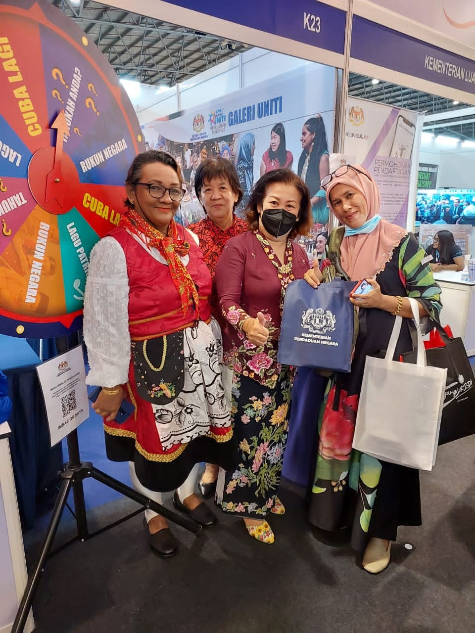 16 Oktober 2022, Putrajaya - Jelajah Aspirasi Keluarga Malaysia Peringkat Negeri Melaka telah berlangsung selama tiga hari dari 14 hingga 17 Oktober 2022 di Pusat Dagangan Antarabangsa Melaka (MITC), Melaka. Kementerian Perpaduan Negara menerima lawatan daripada Exco Perpaduan, Penerangan, Sumber Manusia dan Hal Ehwal Pengguna Negeri Melaka, YB Tuan Ngwe Hee Sem dan Pengarah Perpaduan Negeri Melaka, Puan Intan Suhana Yusoff bagi meluangkan masa menyambut pengunjung yang hadir. Pelbagai jenis aktiviti, permainan dan pameran momen-momen UNITI disediakan untuk semua pengunjung yang hadir.