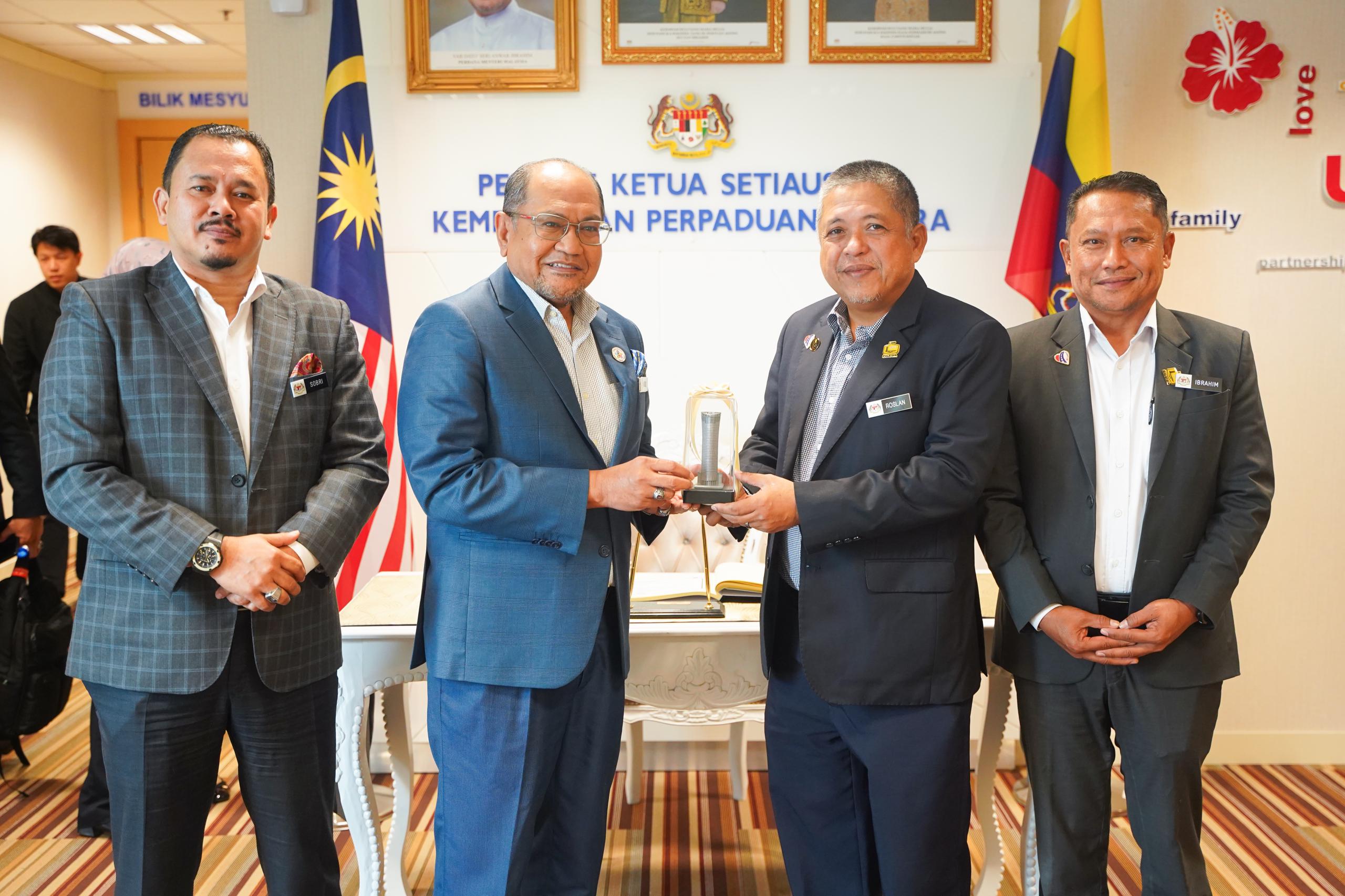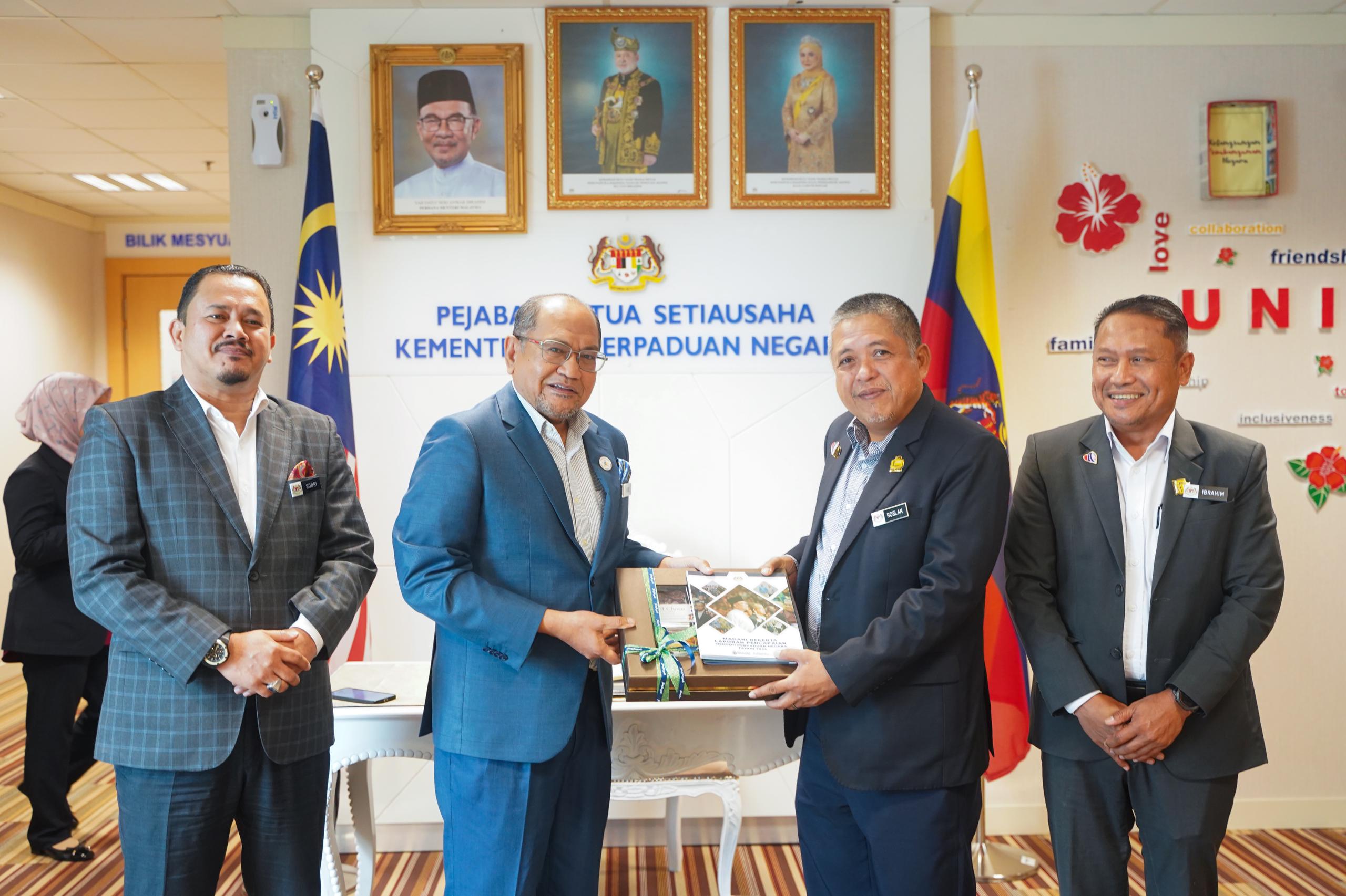 Kunjungan hormat ini bertujuan menjadi platform terbaik kepada hubungan kerjasama dan komunikasi yang berkesan terutamanya dalam membincangkan mengenai hala tuju dan perancangan serta pelaksanaan projek pembangunan Kementerian Perpaduan Negara.