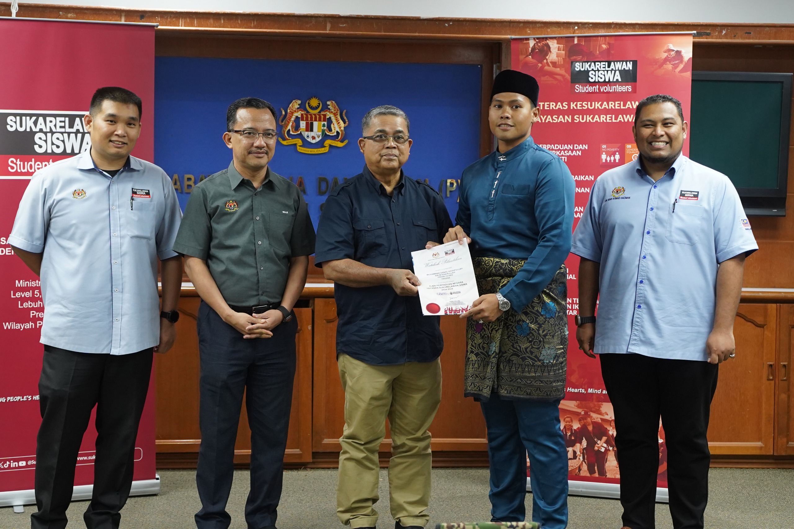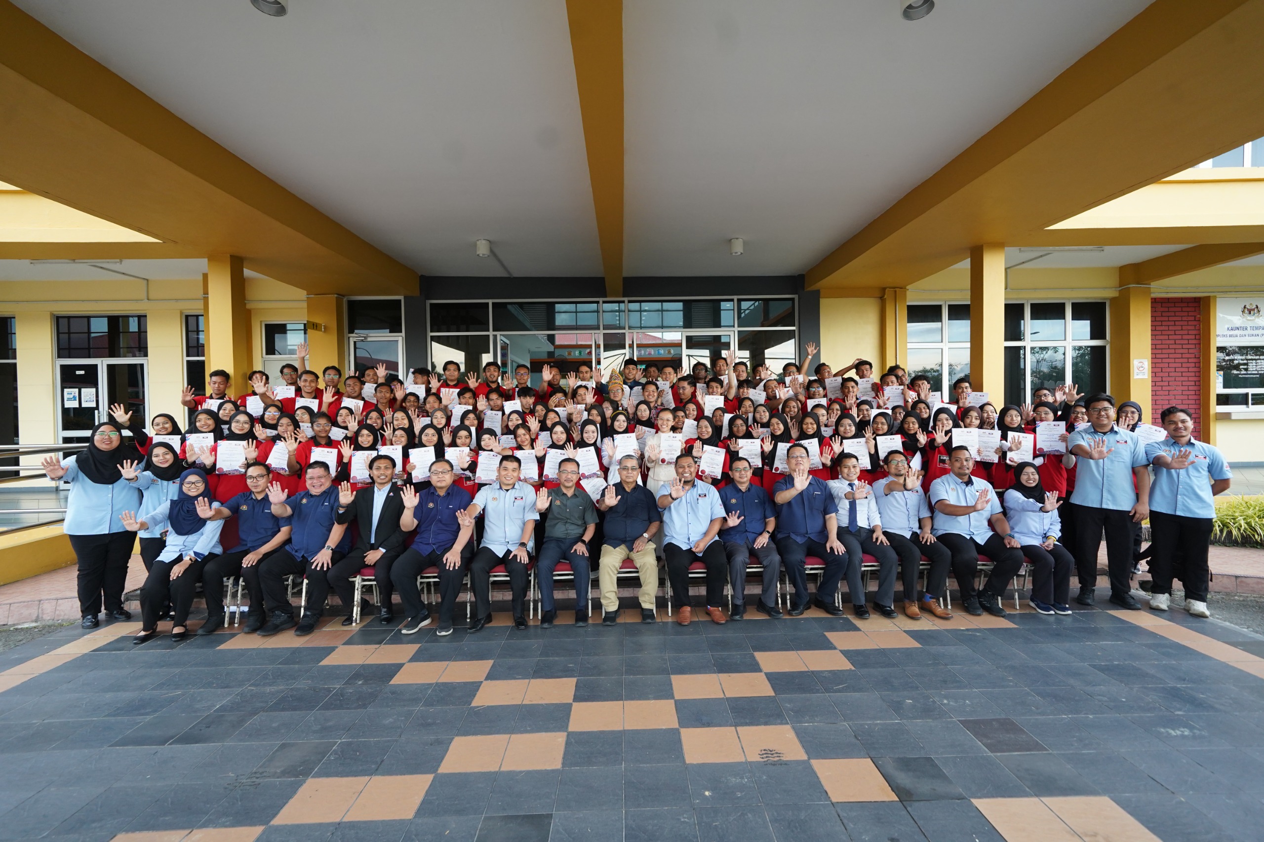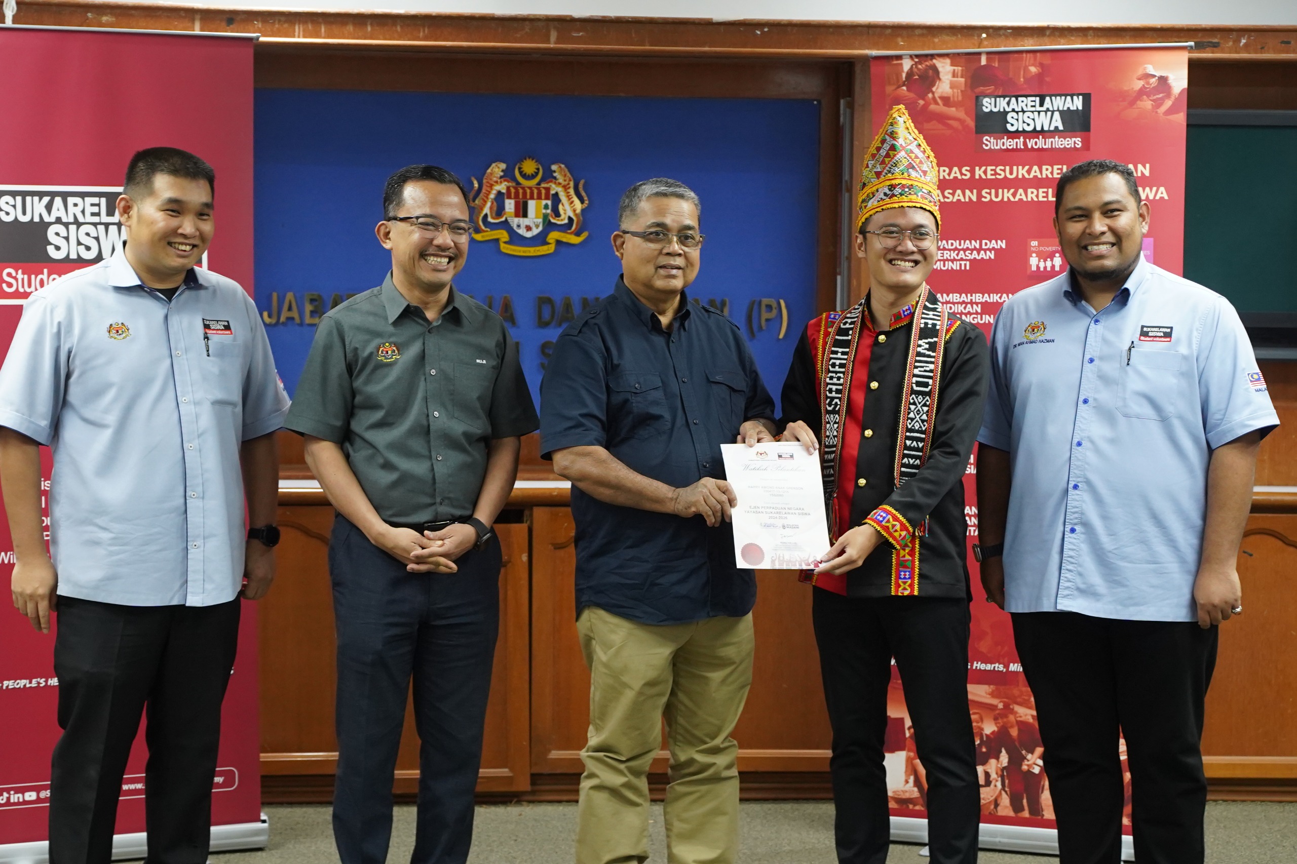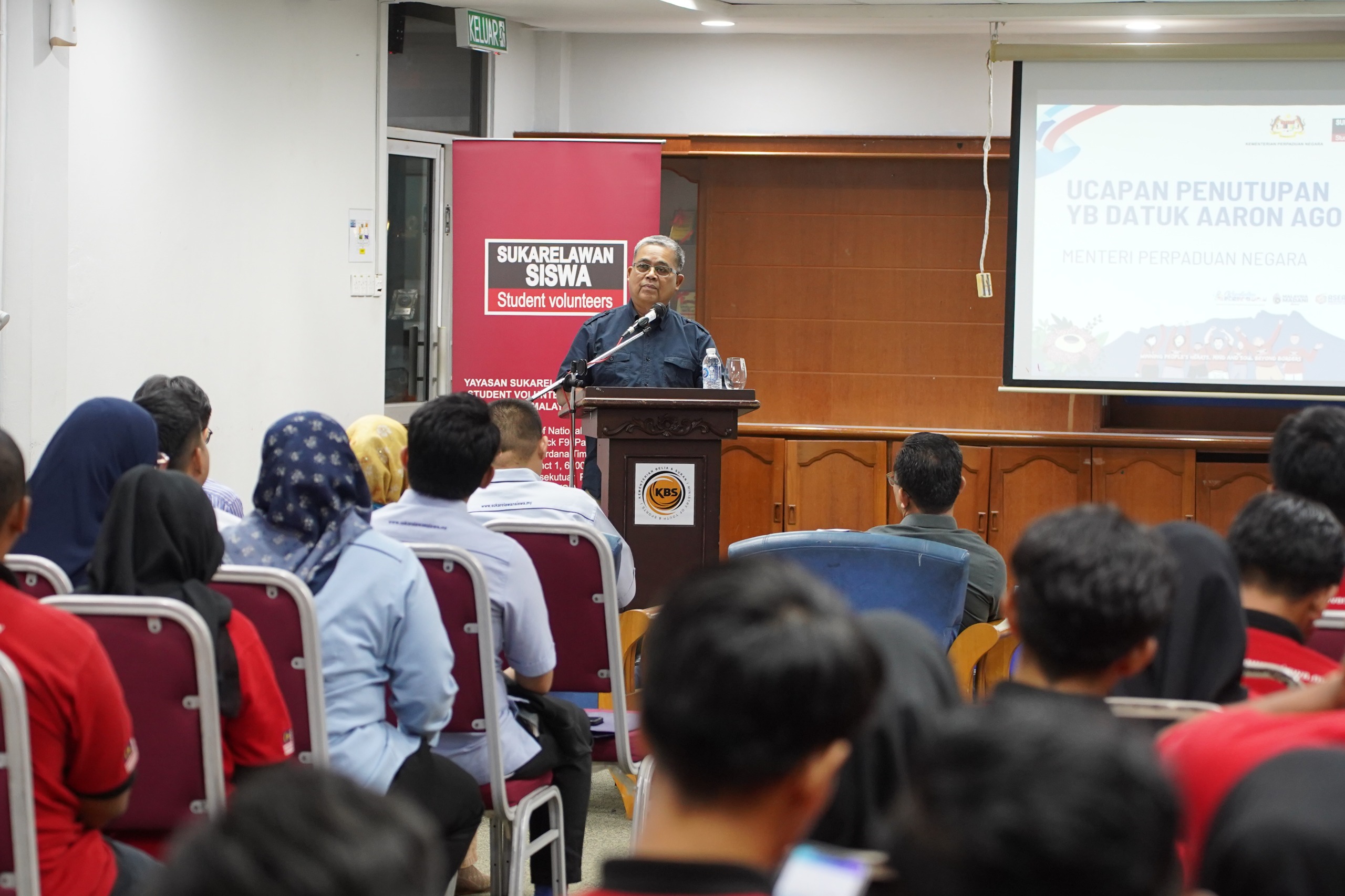 28 April 2025, Sabah - YB Datuk Aaron Ago Dagang, Menteri Perpaduan Negara telah menyempurnakan Majlis Penutupan MADANI Berkhidmat : Misi Sukarelawan Siswa ke Sabah 2025 di Kompleks Belia dan Sukan. Misi ini telah disertai oleh 100 orang sukarelawan siswa dan alumni bermula pada 12 April hingga 30 April 2025 di tujuh (7) kawasan di Sabah.