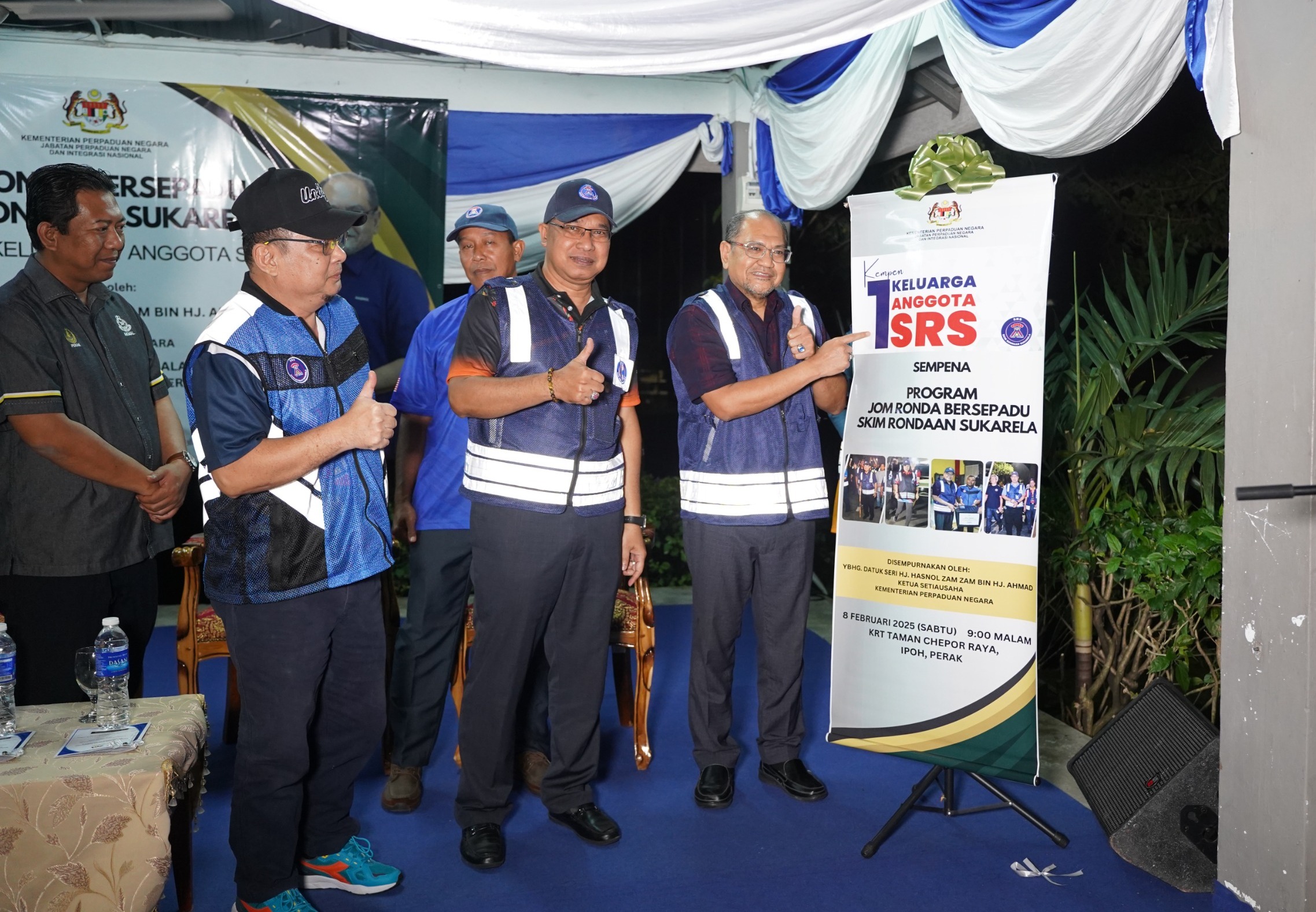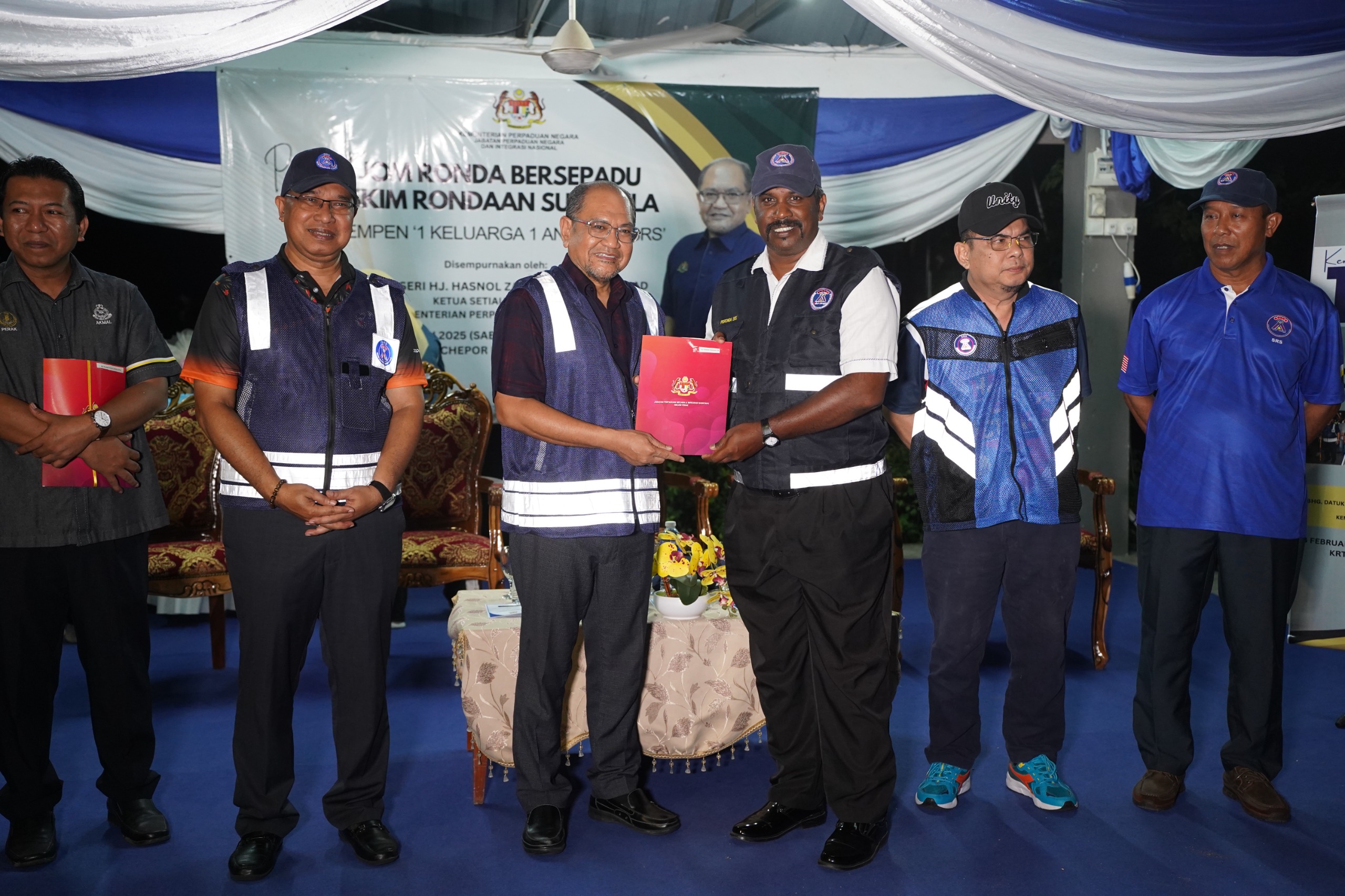 8 Februari 2025, Perak - Kementerian Perpaduan Negara melalui Jabatan Perpaduan Negara dan Integrasi Nasional (JPNIN) telah mengadakan Program Jom Ronda Bersepadu Skim Rondaan Sukarela dan Kempen 1 Keluarga 1 Anggota SRS yang disempurnakan oleh YBhg. Datuk Seri Hj. Hasnol Zam Zam bin Hj. Ahmad, Ketua Setiausaha Kementerian Perpaduan Negara bertempat di Kawasan Rukun Tetangga (KRT) Taman Chepor Raya, Kinta, Perak Darul Ridzuan.