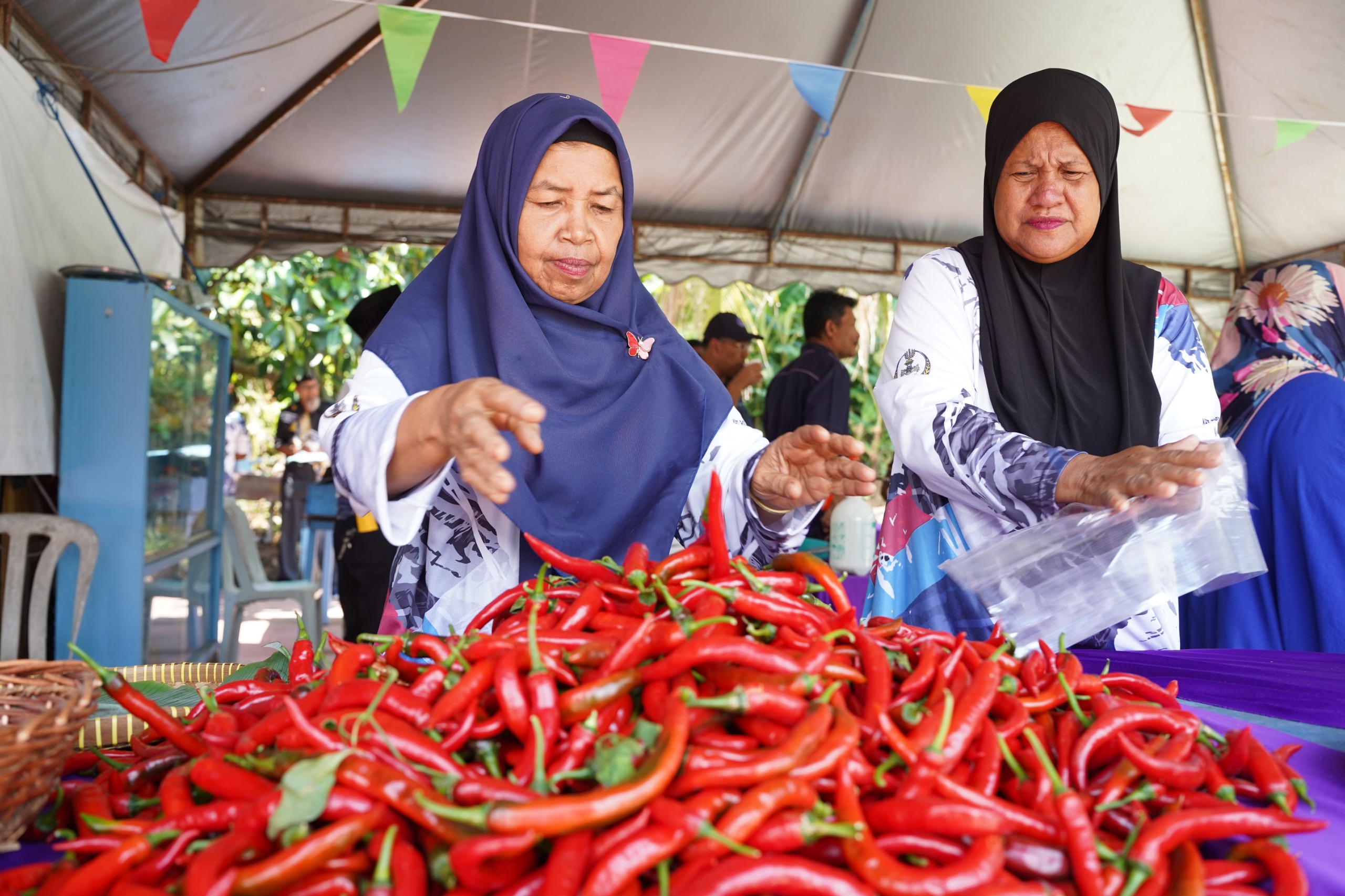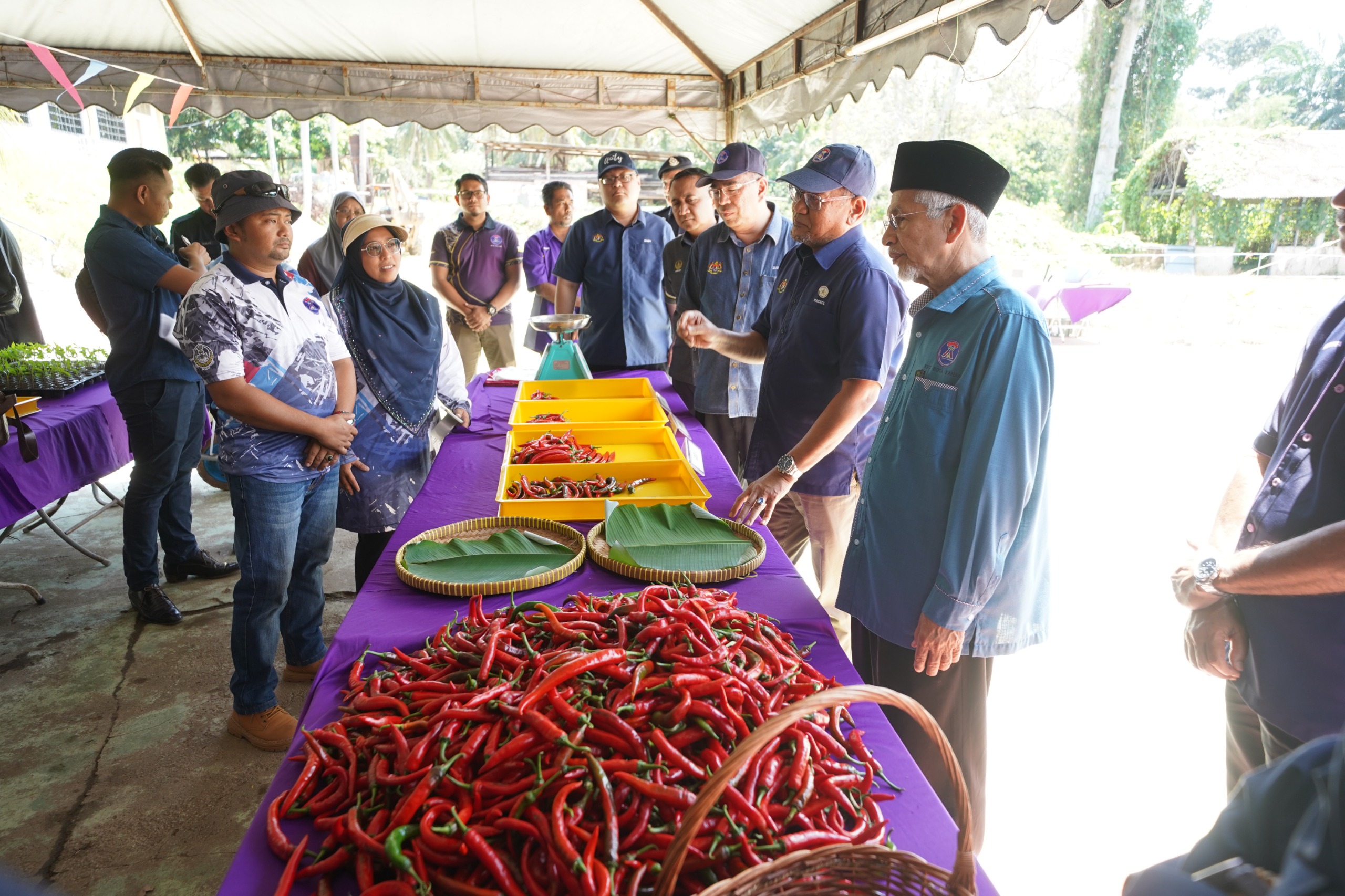 Projek Ekonomi KRT Bota Kanan merangkumi peniagaan Tanaman Cili secara Fertigasi (Tanaman Anak Pokok Pisang & Tuai Cili) serta Sewaaan Lot Kedai Gerai KRT. YBhg. Datuk Seri juga turut berkesempatan melawat tanaman cili dan anak pokok pisang serta membuat Penyerahan Apron kepada Warga KRT yang hadir.