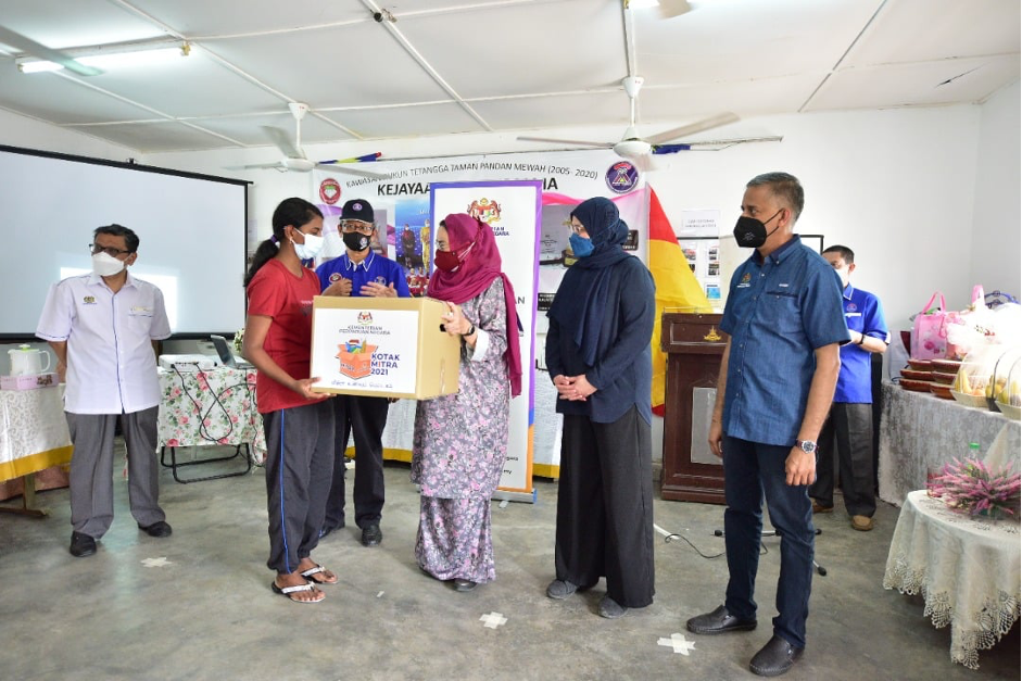 4 September 2021 - YB Datuk Halimah Mohamed Sadique, Menteri Perpaduan Negara menghadiri Program Agihan Kotak Makanan Mitra Kementerian Perpaduan Negara di Dewan Komuniti Taman Pandan Mewah, Ampang Jaya, Selangor.