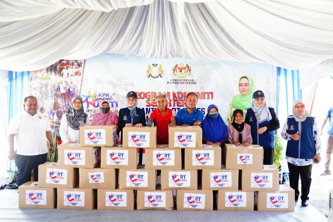 Pada waktu petang, YB Datuk Halimah bersama dengan penduduk Kampung Baru Kota Kechil untuk menyampaikan bantuan RT-Cares kepada penerima yang tergolong dalam kalangan B40. Kotak Prihatin MITRA turut diagihkan kepada penerima-penerima yang hadir bersama dengan bekalan minuman petang.