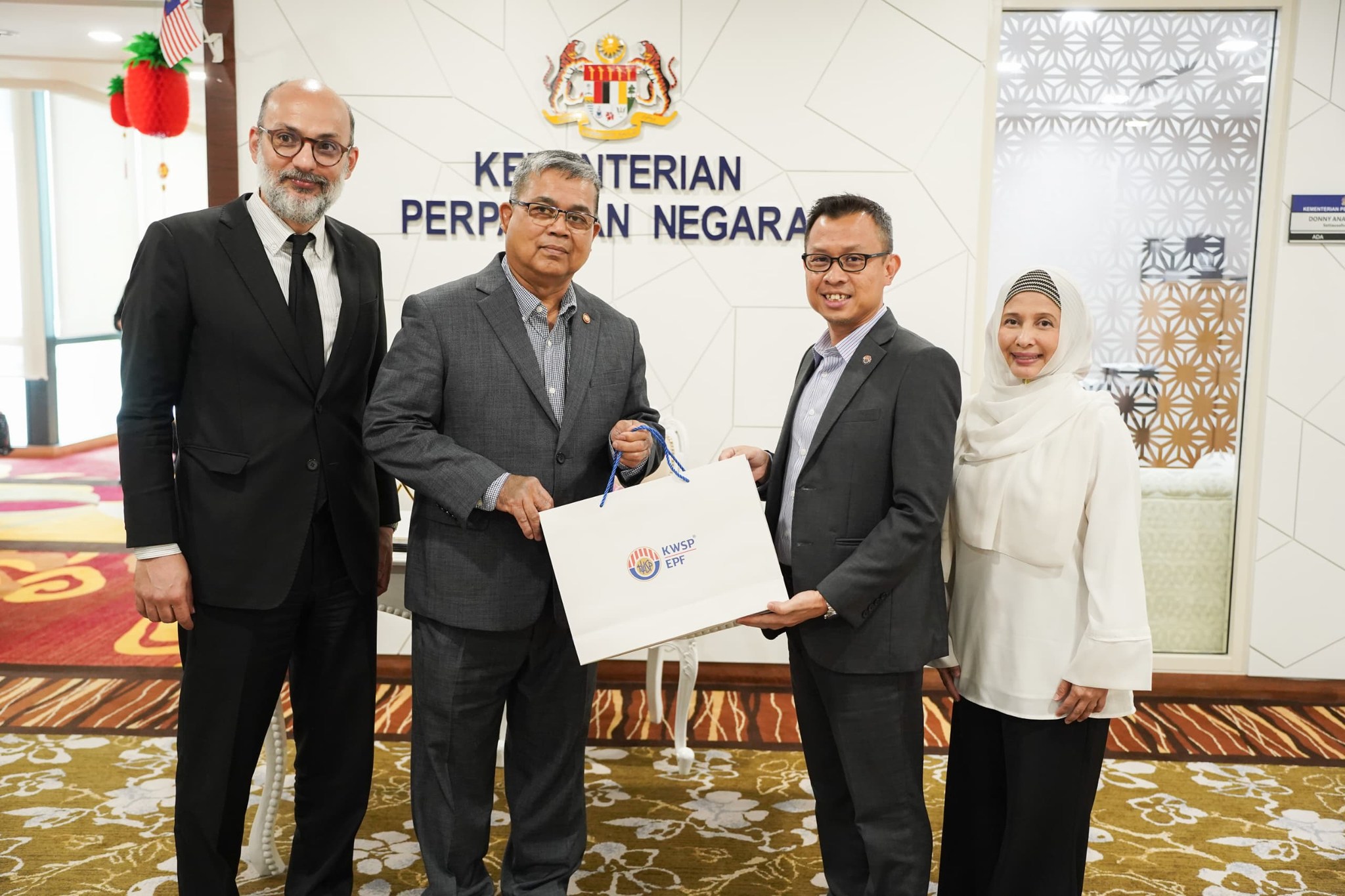 23 Januari 2024, Putrajaya - Sesi libat urus YB Datuk Aaron Ago Dagang Menteri Perpaduan Negara bersama pakar ekonomi dalam bidang perlindungan sosial, YBhg. Dr. Amjad Rabi anjuran Kumpulan Wang Simpanan Pekerja (KWSP) di sini hari ini.