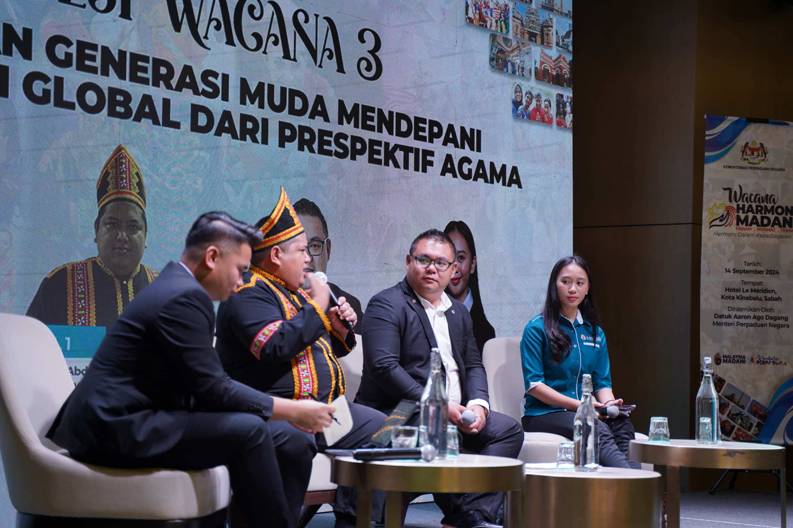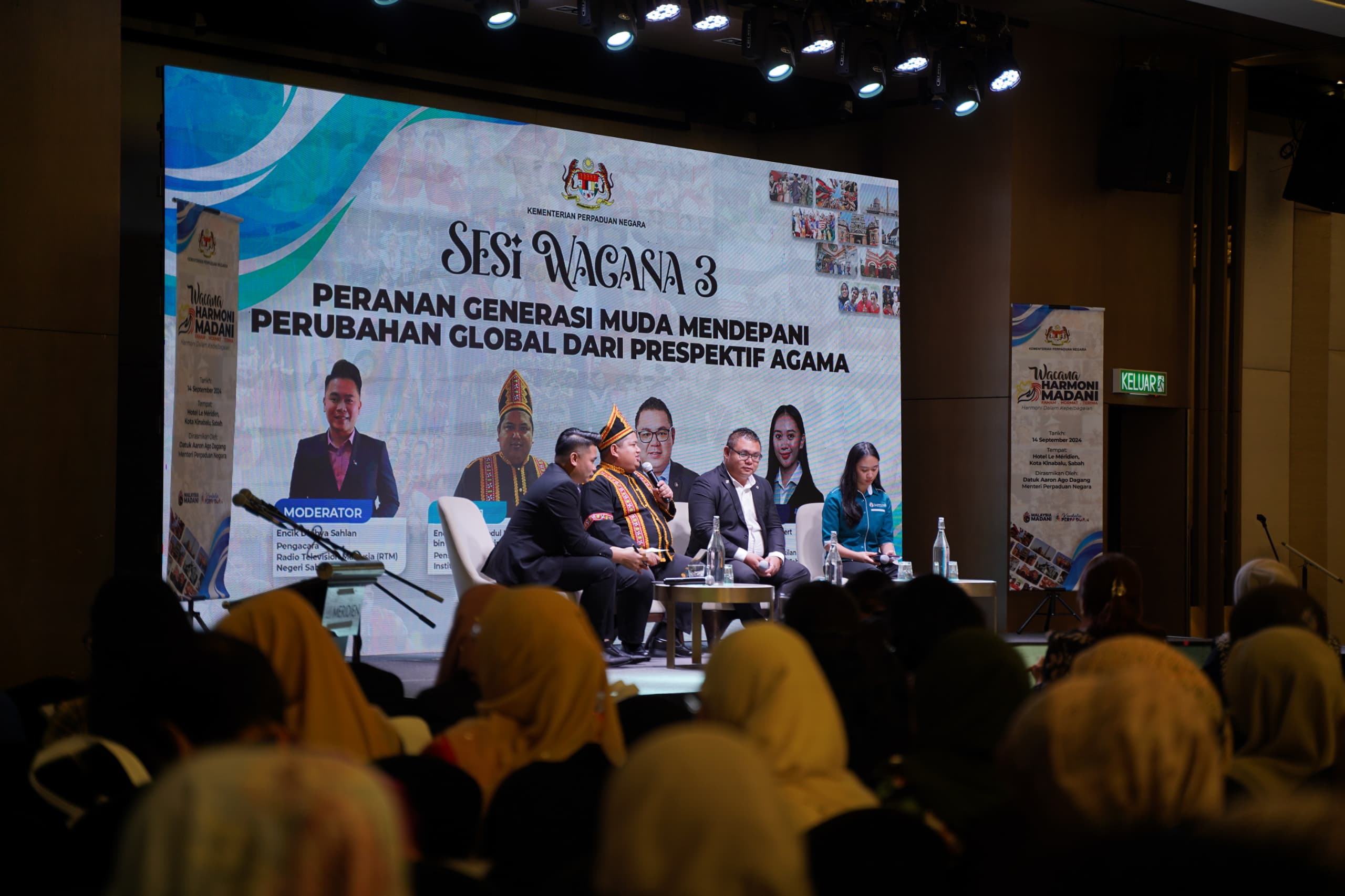 14 September 2024, Sabah - Sekitar Sesi Wacana yang ketiga dengan tajuk Peranan Generasi Muda Mendepani Perubahan Global Dari Perspektif Agama sempena Wacana Harmoni Madani: Harmoni Dalam Kepelbagaian bertempat di Le Meredien, Kota Kinabalu Sabah.