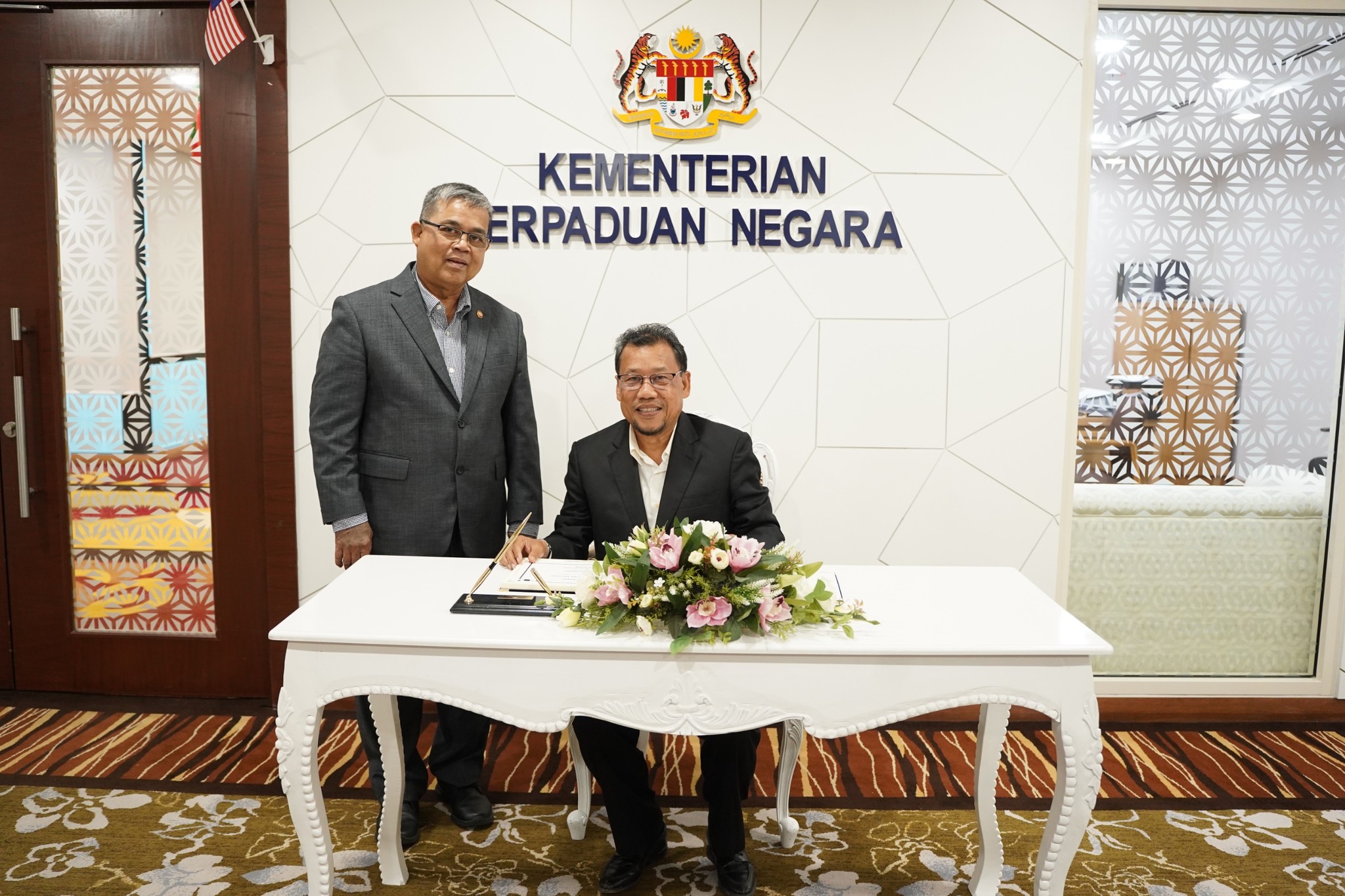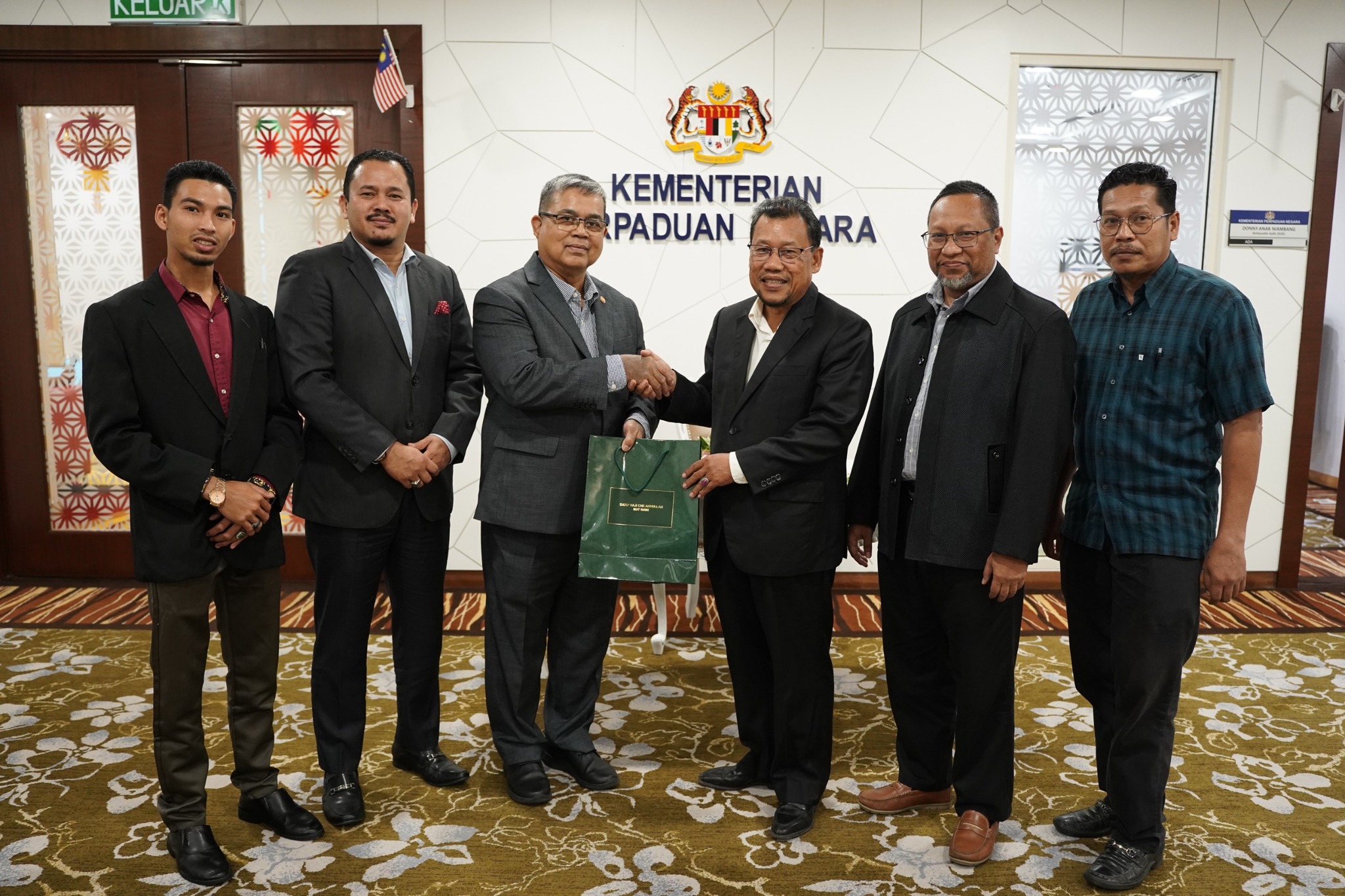 Turut hadir, YBrs. Encik Sobri bin Mat Daud, Timbalan Ketua Setiausaha Kementerian Perpaduan Negara, Encik Che Din bin Mustap, Pegawai Perhubungan dan Encik Izani bin Abd Wahab, Pegawai Seranta.