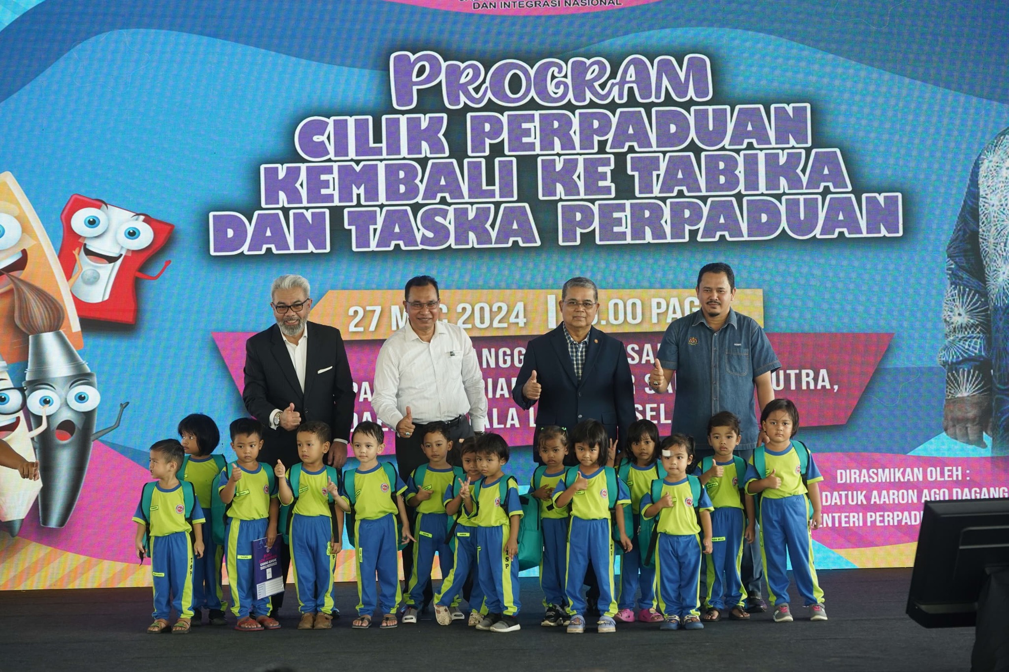 27 Mac 2024, Kuala Langat - YB Datuk Aaron Ago Dagang, Menteri Perpaduan Negara telah merasmikan Program Cilik Perpaduan Kembali Ke Tabika Perpaduan dan Taska Perpaduan Tahun 2024 di Rumah Pangsa Impian, Bandar Saujana Putra.