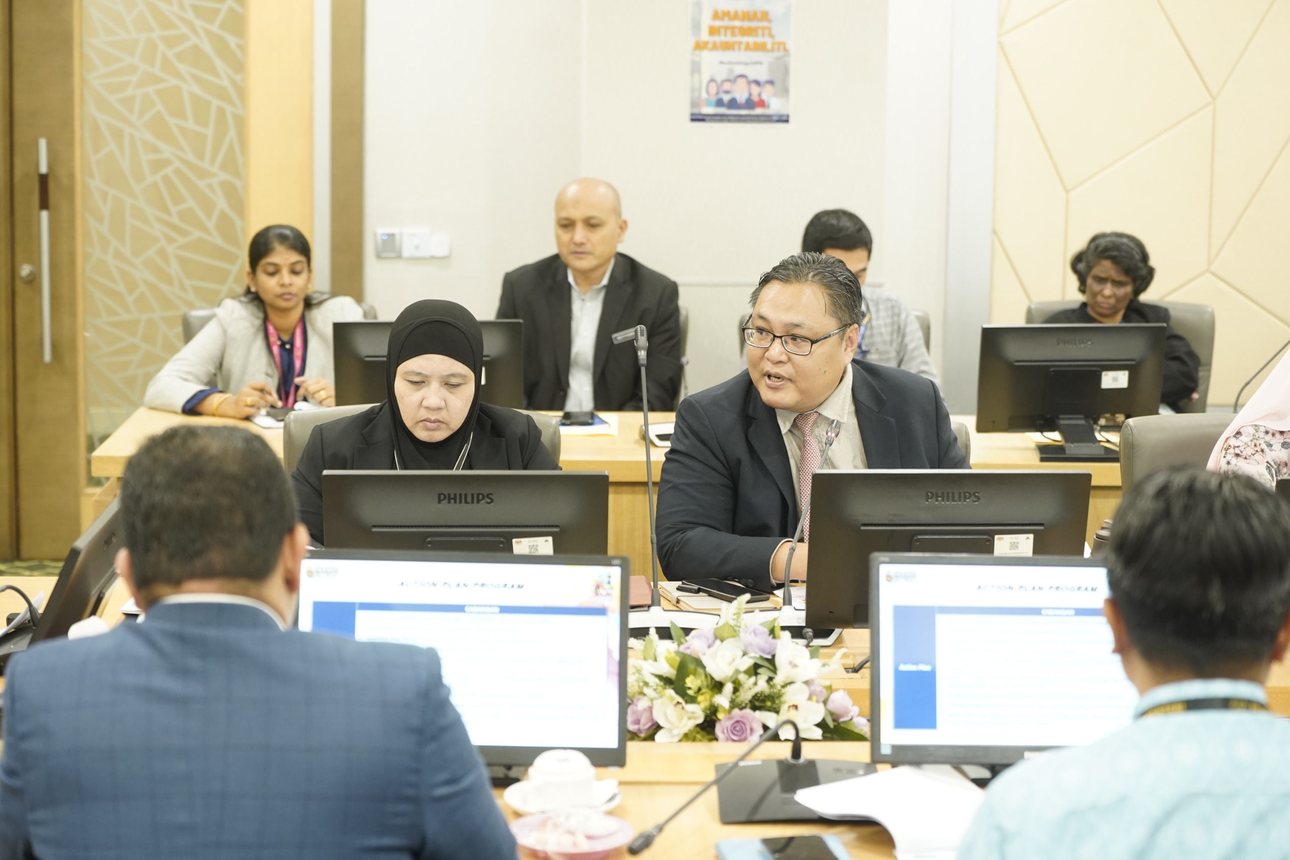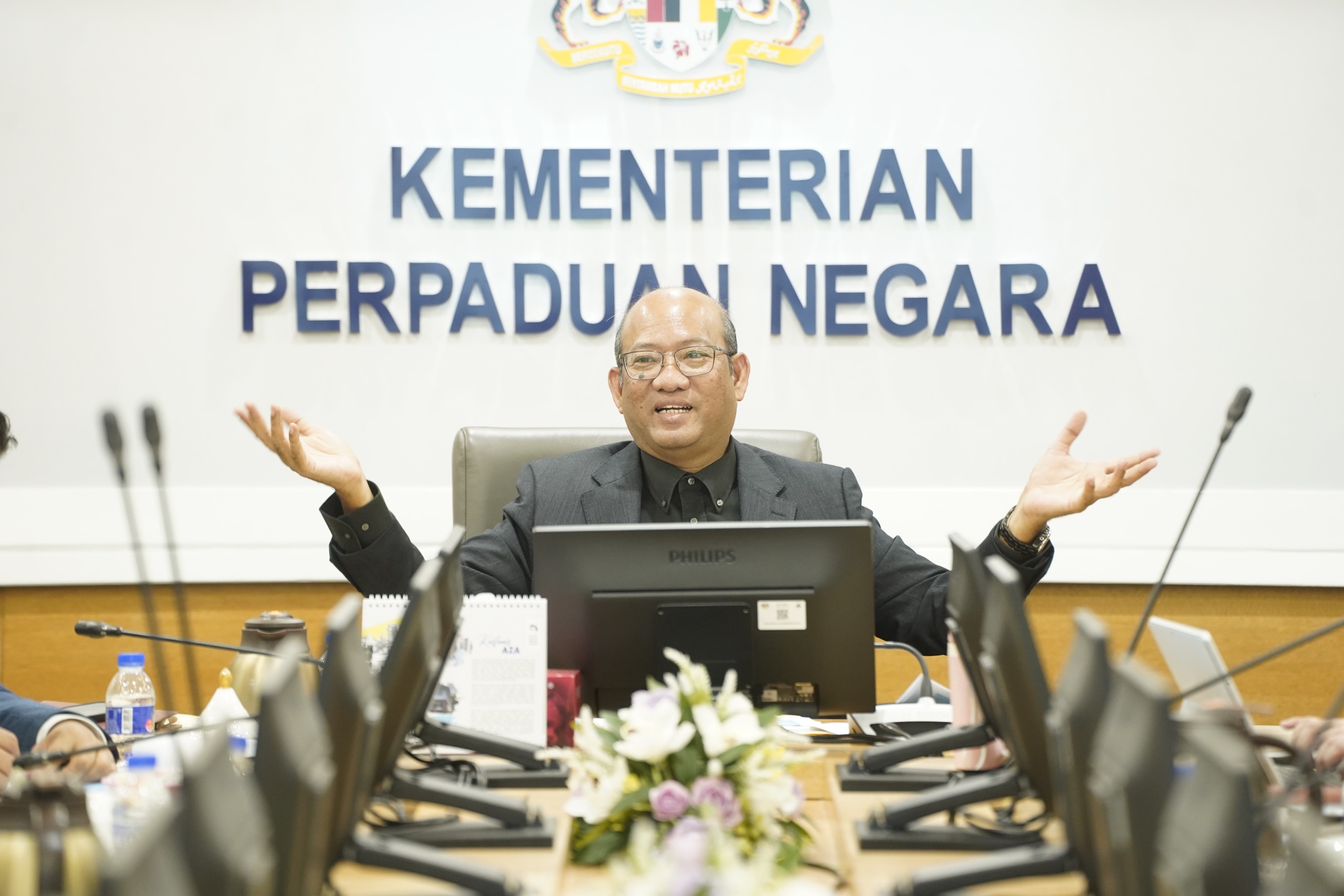Turut hadir, Encik Mohamad Sobri Bin Mat Daud, Timbalan Ketua Setiausaha Kementerian Perpaduan Negara, Pengurusan Tertinggi Kementerian, Jabatan dan Agensi.
