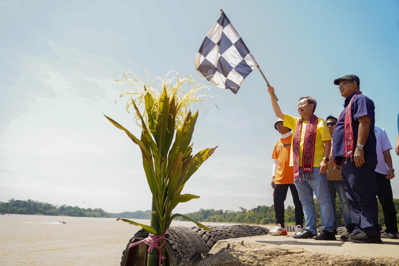20 September 2024, Sarawak - Majlis Perasmian Kanowit Waterfront dan Pesta Kanowit 2024 telah disempurnakan oleh YB Datuk Amar Prof. Dr. Sim Kui Hian, Timbalan Premier, Menteri Kesihatan Awam, Perumahan dan Kerajaan Tempatan, Sarawak di Pentas Utama Kanowit Waterfront.