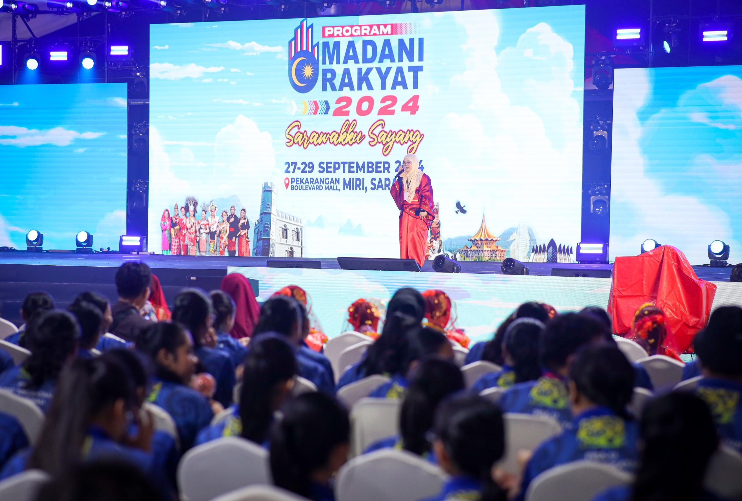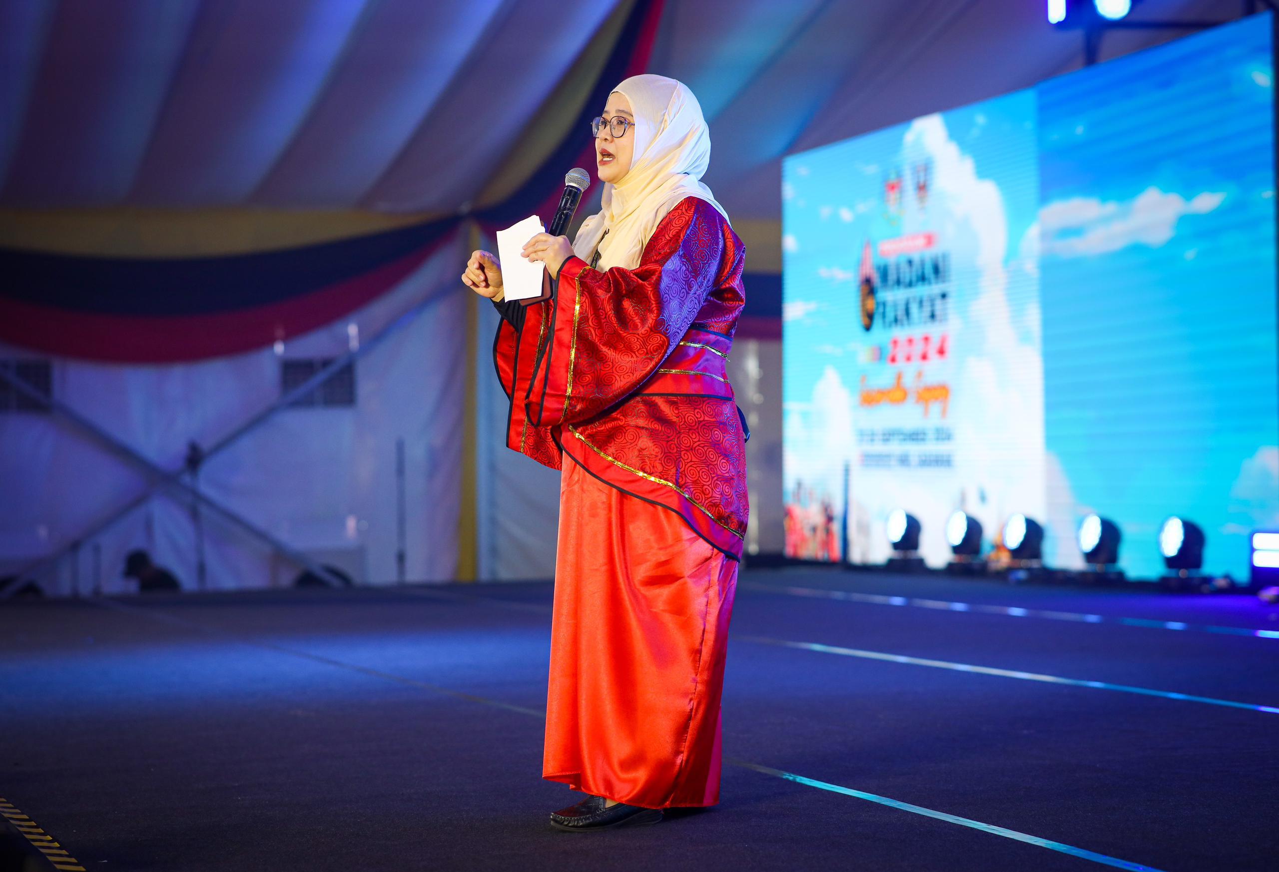 27 September 2024, Sarawak - Suasana program Pocket Talk: Komuniti Rukun Tetangga (KRT) dan Tabika Perpaduan yang disampaikan oleh Puan Habibah binti Jaafar, Ketua Penolong Setiausaha, Kementerian Perpaduan Negara di Pentas Utama Program MADANI Rakyat 2024 Sarawakku Sayang.