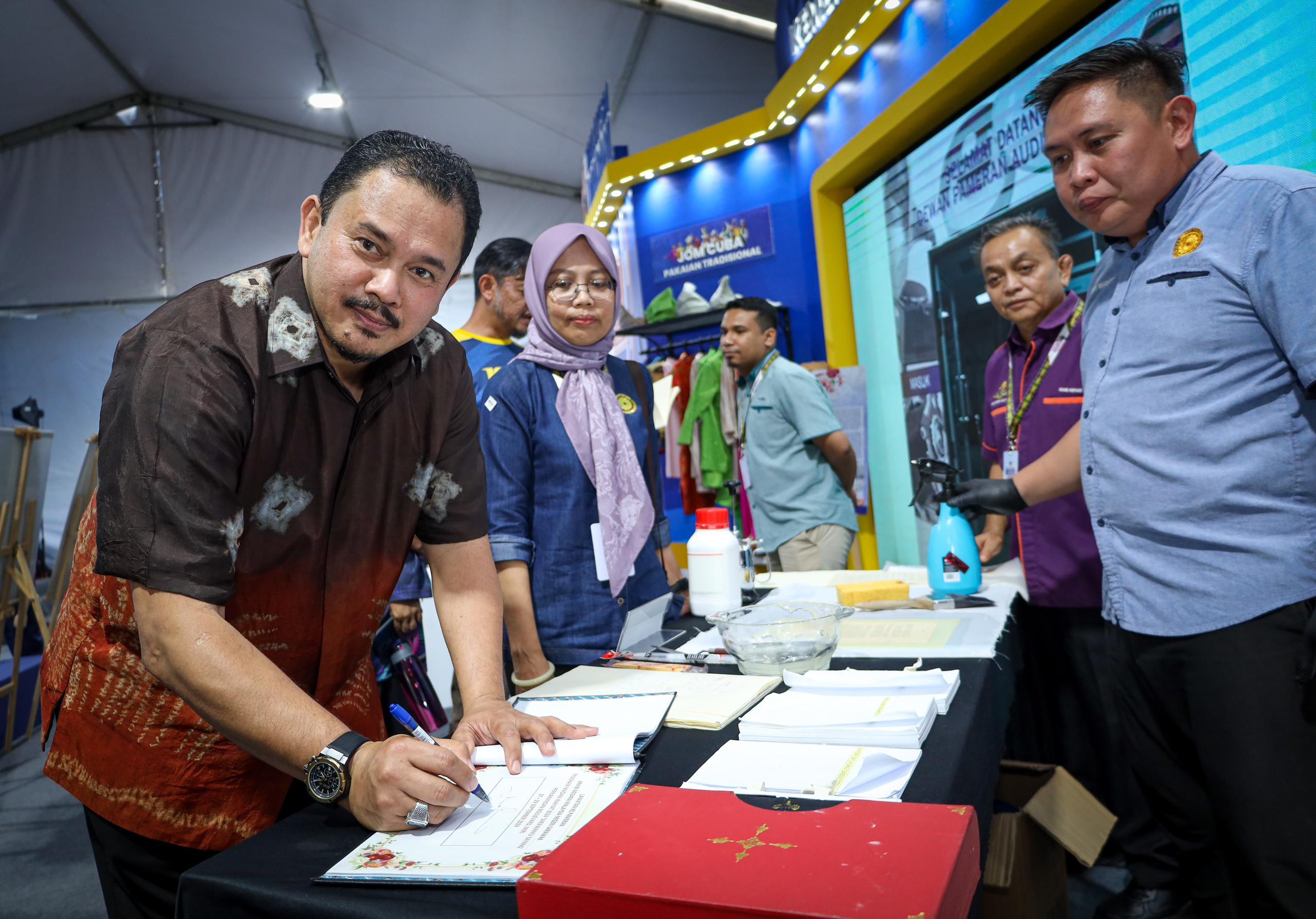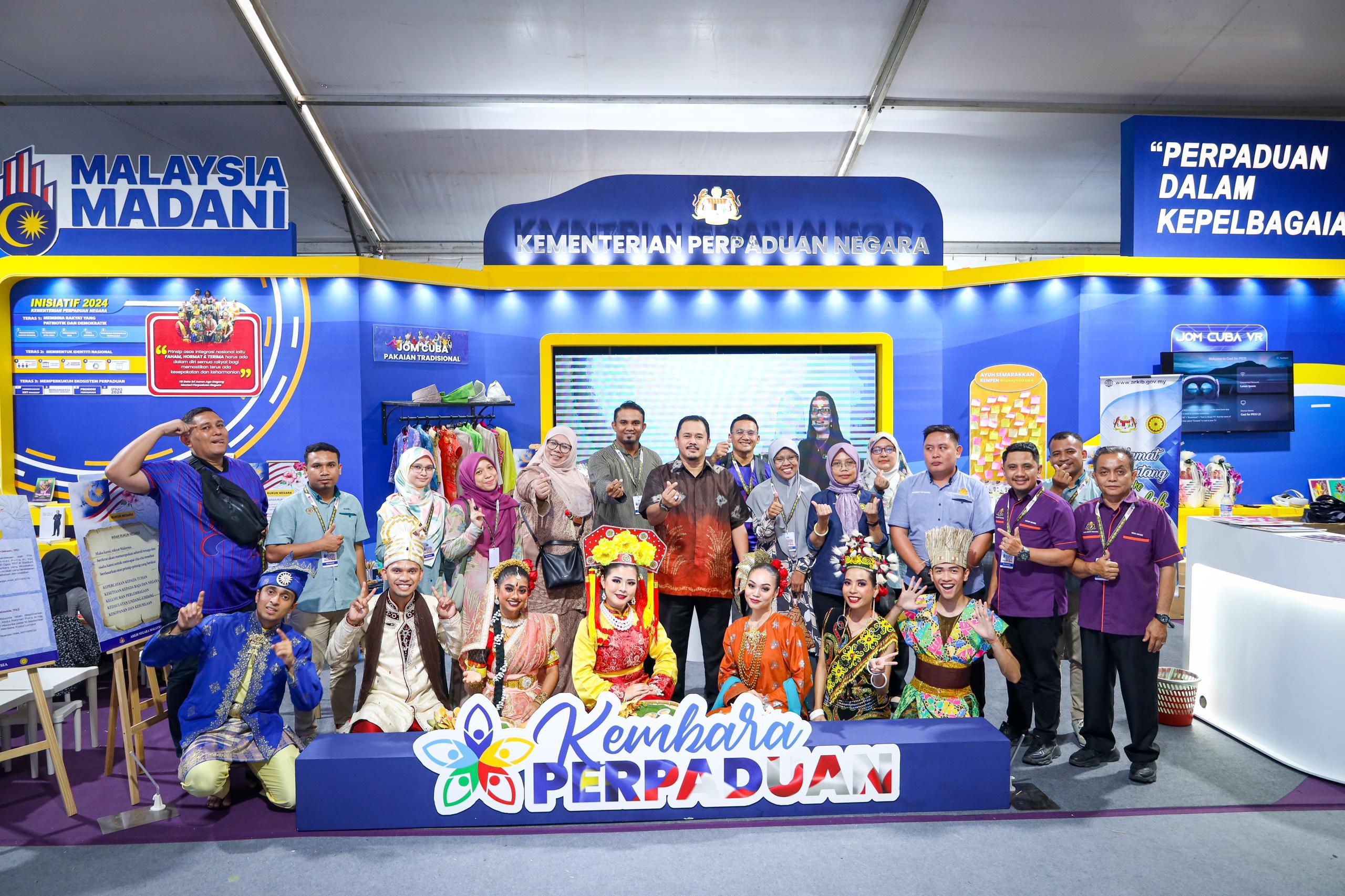 28 September 2024, Sarawak - YBrs. Encik Mohamad Sobri bin Mat Daud, Timbalan Ketua Setiausaha, Kementerian Perpaduan Negara turut meluangkan masa untuk mengunjungi reruai KPN dan menyantuni para petugas daripada jabatan dan agensi selepas menghadiri Majlis Perasmian Program MADANI Rakyat 2024 Sarawakku Sayang yang disempurnakan oleh YAB Perdana Menteri, Dato’ Seri Anwar Ibrahim.