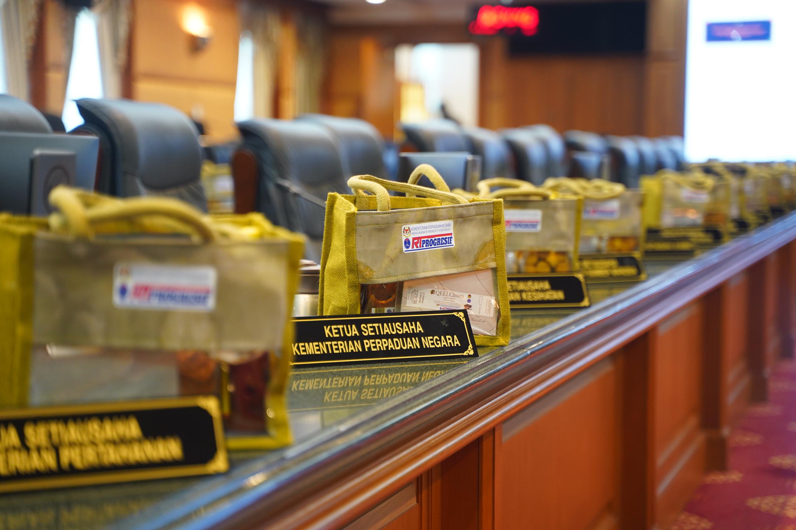 Ahli mesyuarat telah diberikan cenderahati Kementerian Perpaduan Negara yang merupakan produk-produk KRT.