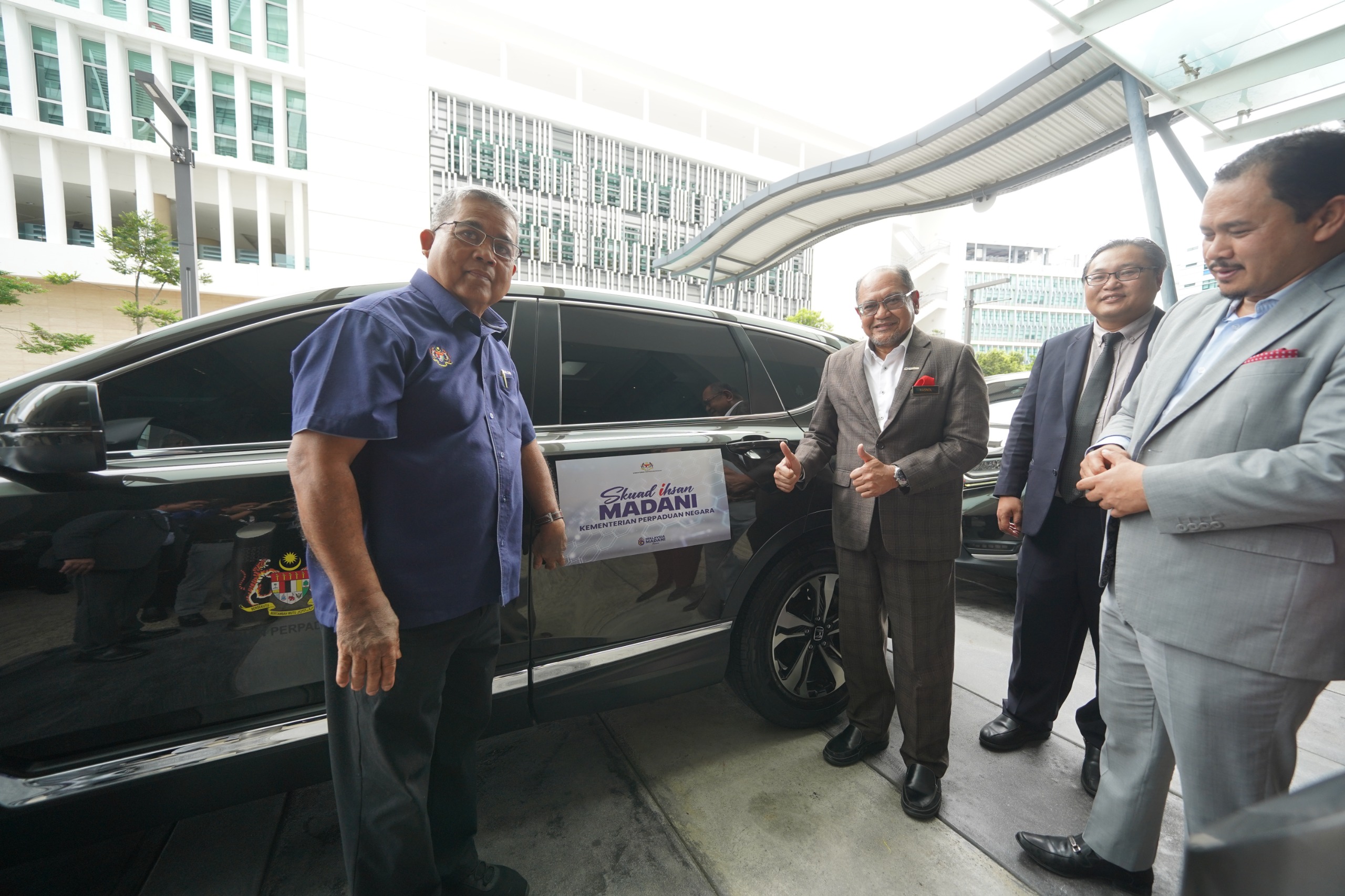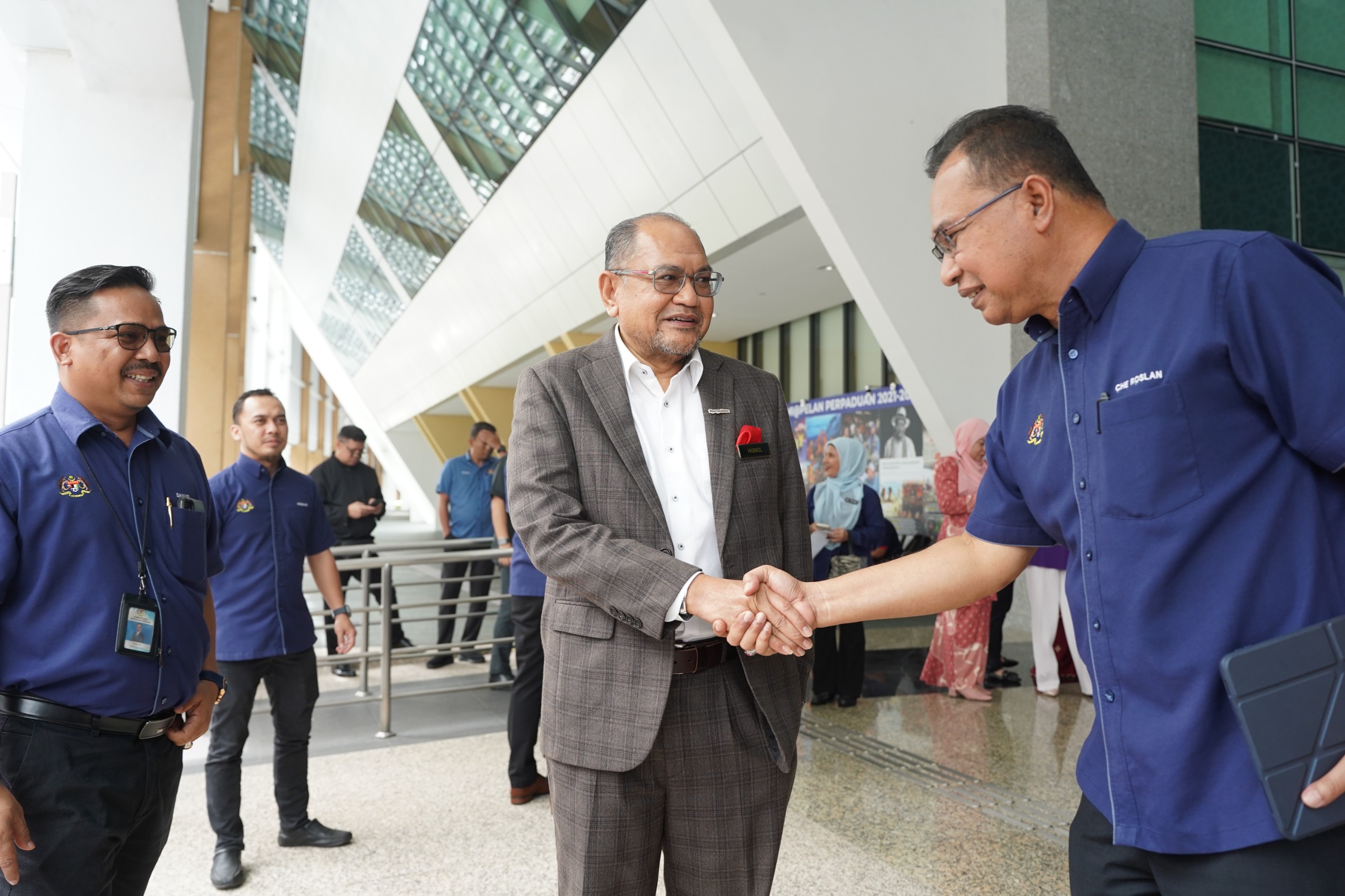 Majlis pelancaran Skuad Ihsan MADANI KPN telah disempurnakan oleh YB Datuk Aaron Ago Dagang, Menteri Perpaduan Negara di pekarangan lobi KPN, hari ini.