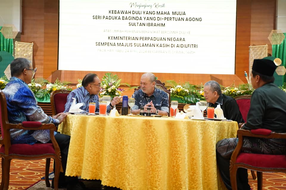 24 April 2024, Putrajaya - Kementerian Perpaduan Negara (KPN) menjunjung kasih atas keberangkatan Kebawah Duli Yang Maha Mulia Seri Paduka Baginda Yang di-Pertuan Agong, Sultan Ibrahim atas limpah perkenan berangkat bercemar duli ke Majlis Sulaman Kasih Aidilfitri KPN.