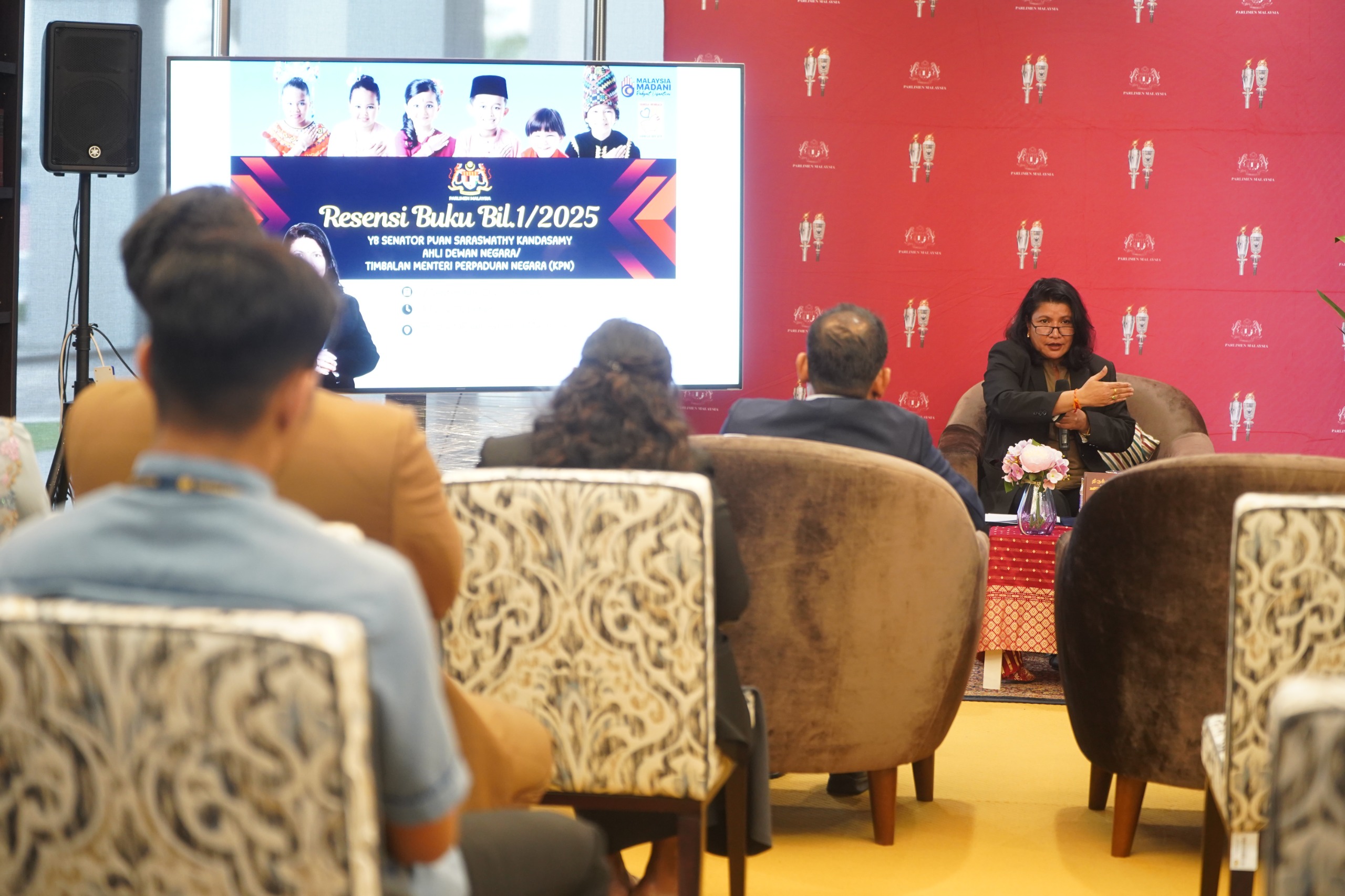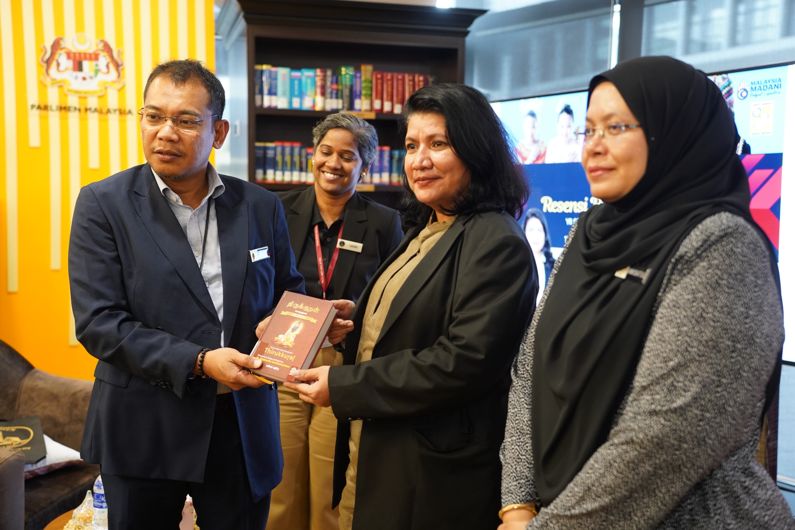 2 September 2025, Kuala Lumpur – YB Senator Puan Saraswathy Kandasami, Timbalan Menteri Perpaduan Negara berbesar hati menerima jemputan sebagai pembicara di Majlis Resensi Buku Thirukkural Bil 1/2025 di Perpustakaan Parlimen.