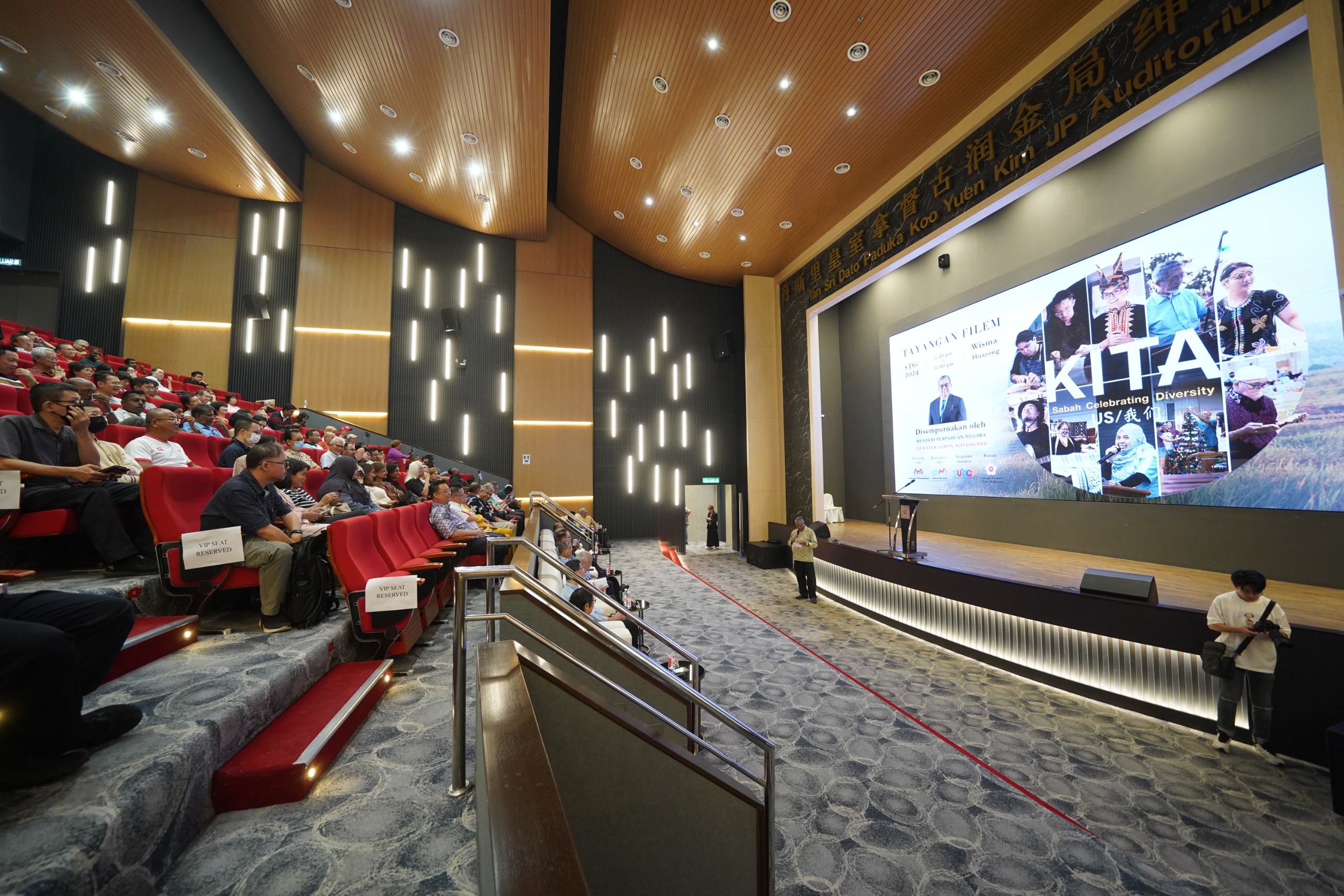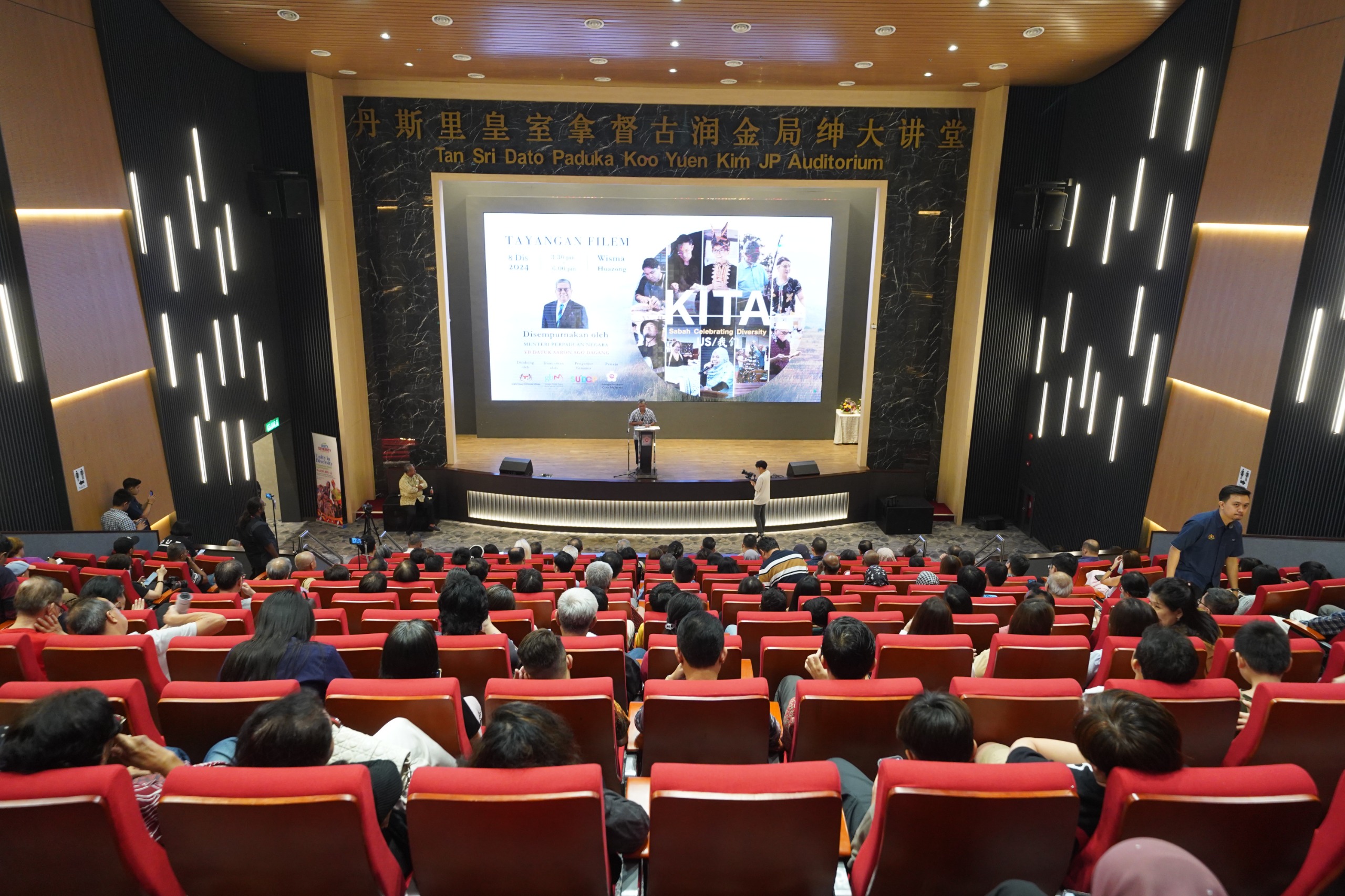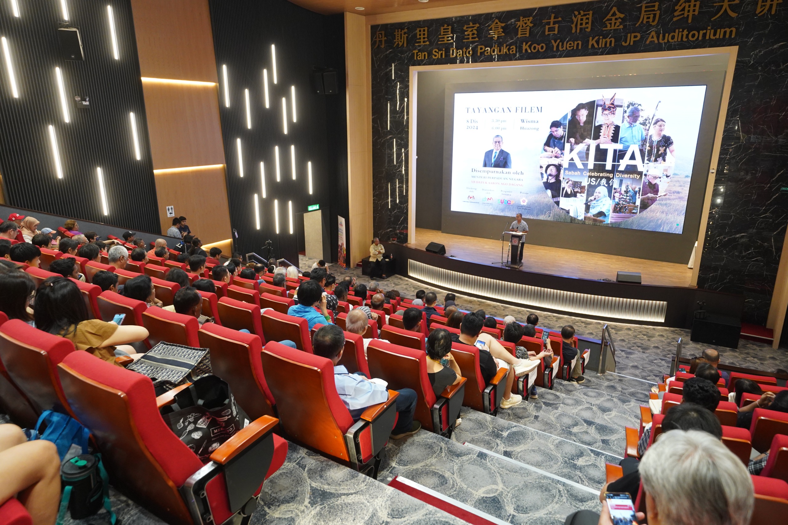 8 Disember 2024, Selangor - YB Datuk Aaron Ago Dagang, Menteri Perpaduan Negara telah menyempurnakan Perasmian Tayangan Filem KITA – Sabah Menyambut Kepelbagaian anjuran Gabungan Bertindak Malaysia (GBM) dengan kerjasama Sabah Unity In Diversity (SUICDP) dan Gabungan Pertubuhan Cina Malaysia (Huazong). Program ini telah diadakan di Auditorium Tan Sri Dato’ Paduka Koo Yuen Kim JP, Wisma Huazong, Lebuhraya Sungai Besi, Serdang hari ini.