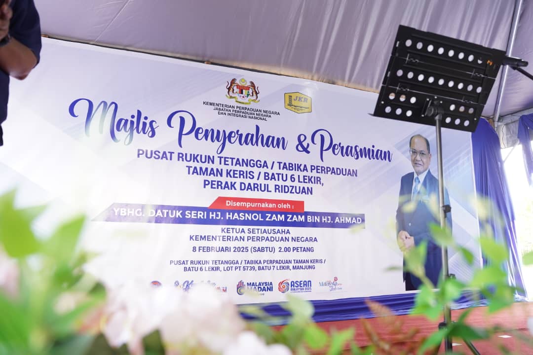 8 Februari 2025, Perak - YBhg. Datuk Seri Hj. Hasnol Zam Zam bin Hj. Ahmad, Ketua Setiausaha Kementerian Perpaduan Negara telah menyempurnakan Majlis Penyerahan dan Perasmian Bangunan Pusat Rukun Tetangga (PRT) Taman Keris/Batu 6 Lekir bertempat di Pusat Rukun Tetangga Taman Keris/Batu 6 Lekir, Manjung, Perak Darul Ridzuan hari ini.