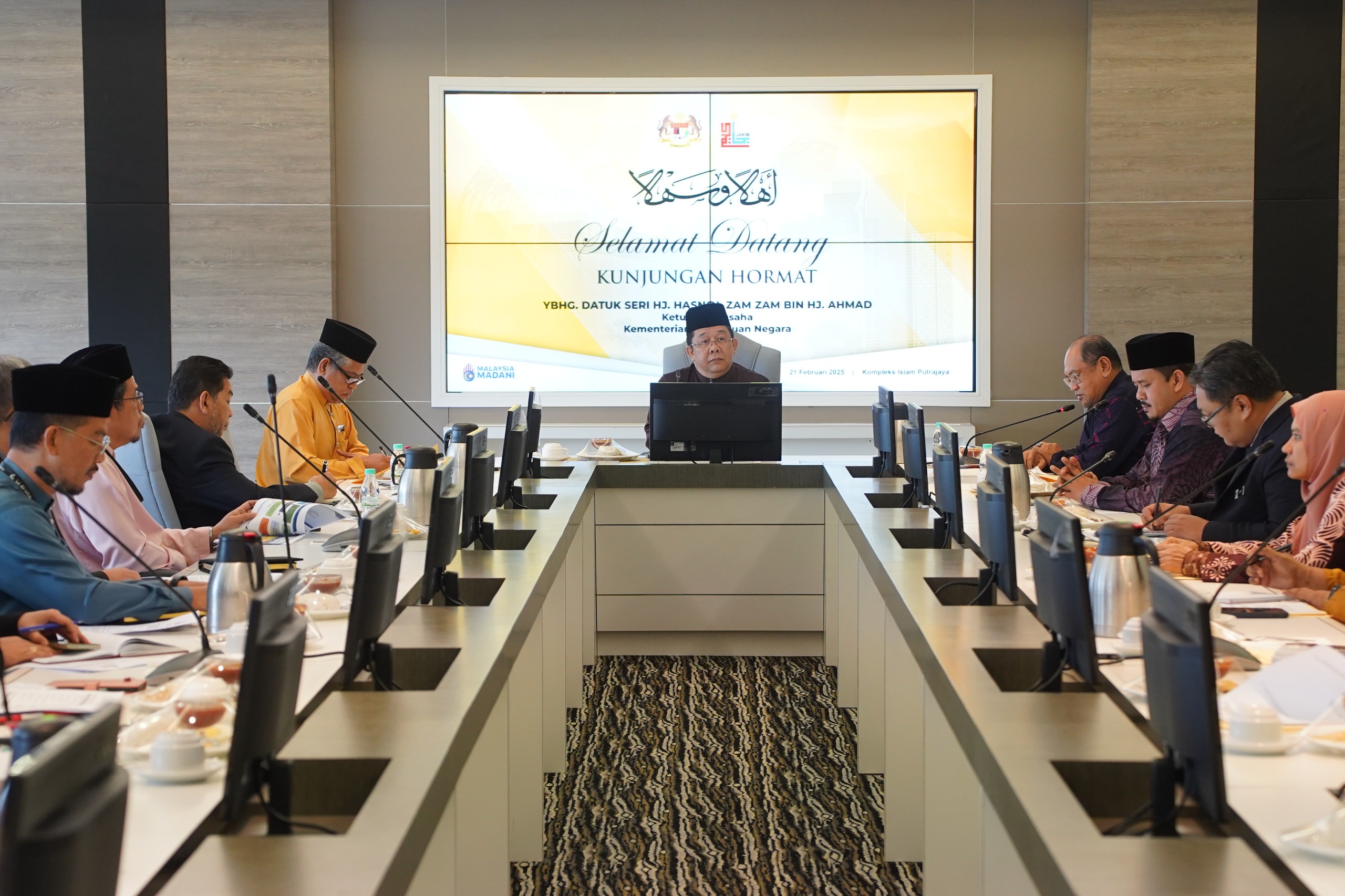 21 Februari 2025, Putrajaya - Sesi Kunjungan Hormat oleh YBhg. Datuk Seri Hj. Hasnol Zam Zam bin Hj. Ahmad, Ketua Setiausaha Kementerian Perpaduan Negara kepada YBhg. Dato' Dr. Sirajuddin Bin Suhaimee, Ketua Pengarah Jabatan Kemajuan Islam Malaysia (JAKIM) telah diadakan pada hari ini.