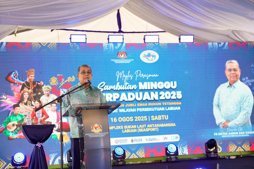 16 Ogos 2025, Labuan – Kementerian Perpaduan Negara (KPN) akan melaksanakan Sambutan Minggu Perpaduan Peringkat Kebangsaan Tahun 2026 di Sabah. Perkara tersebut diumumkan oleh YB Datuk Aaron Ago Dagang ketika menyempurnakan Majlis Perasmian Sambutan Minggu Perpaduan dan Sambutan Jubli Emas Rukun Tetangga 2025 peringkat Wilayah Persekutuan Labuan, di Kompleks Sukan Laut Antarabangsa, hari ini.