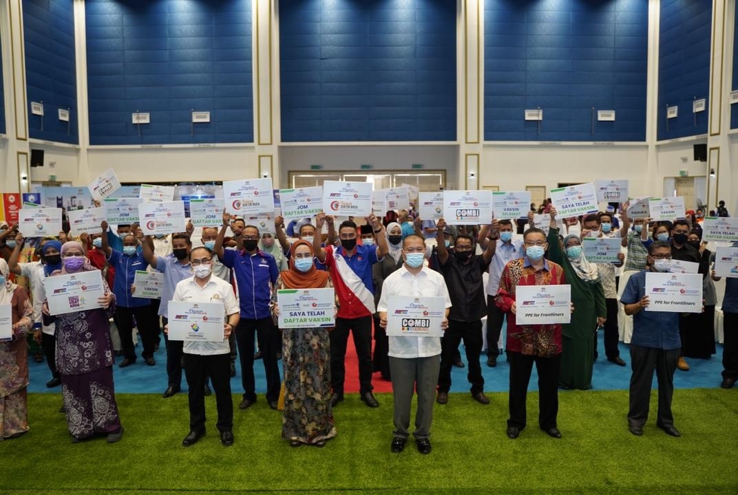 YB Menteri turut melancarkan Program Malaysia Prihatin: Komuniti KRT-Vaksin dan penyerahan vest kepada Skim Rondaan Sukarela (SRS) bagi daerah Kluang, Batu Pahat dan Mersing.