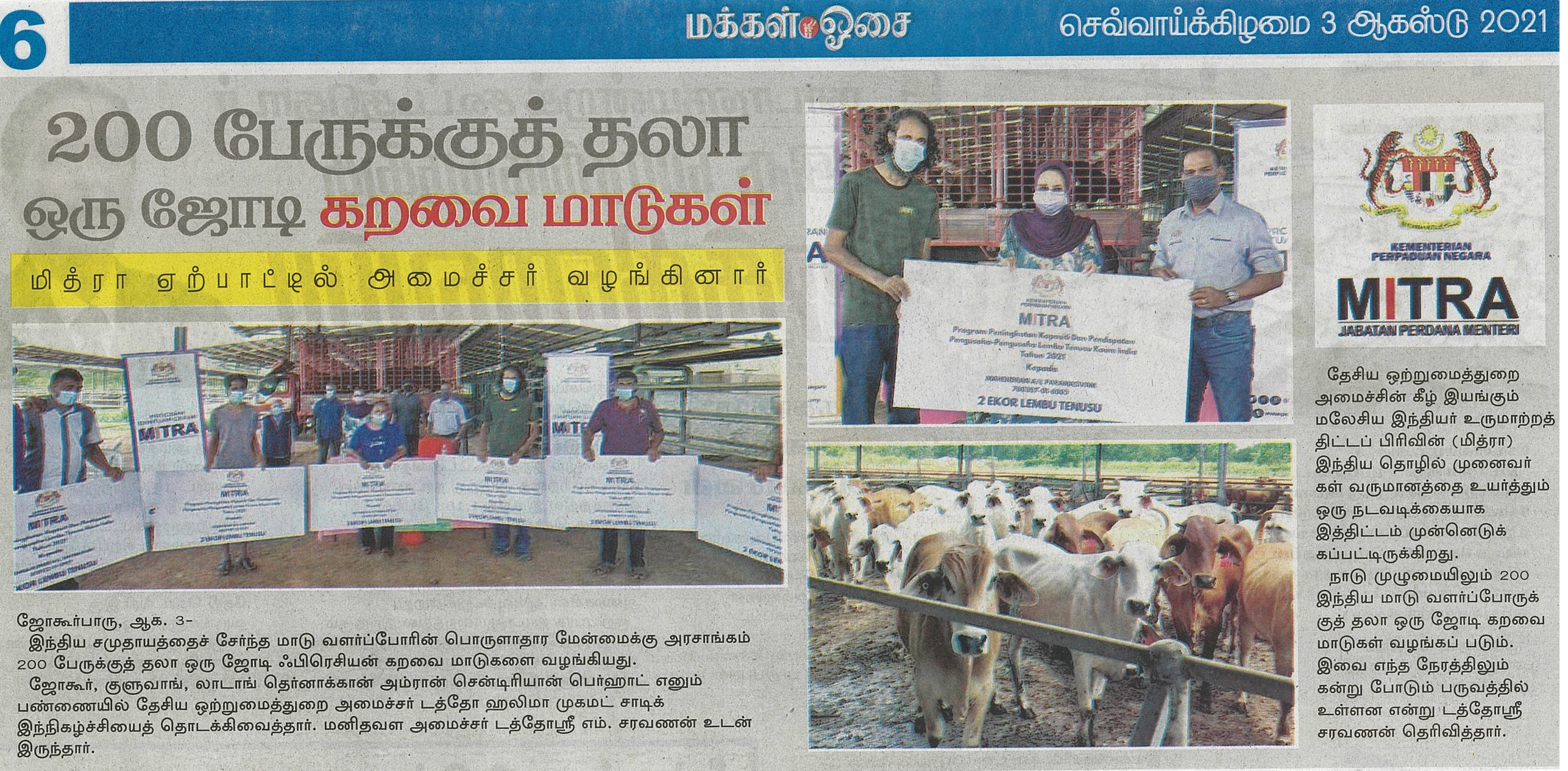 [03-08-2021]- Menteri Perpaduan menyerahkan lembu tenusu Freshien bunting kepada 200 orang penternak lembu kaum India