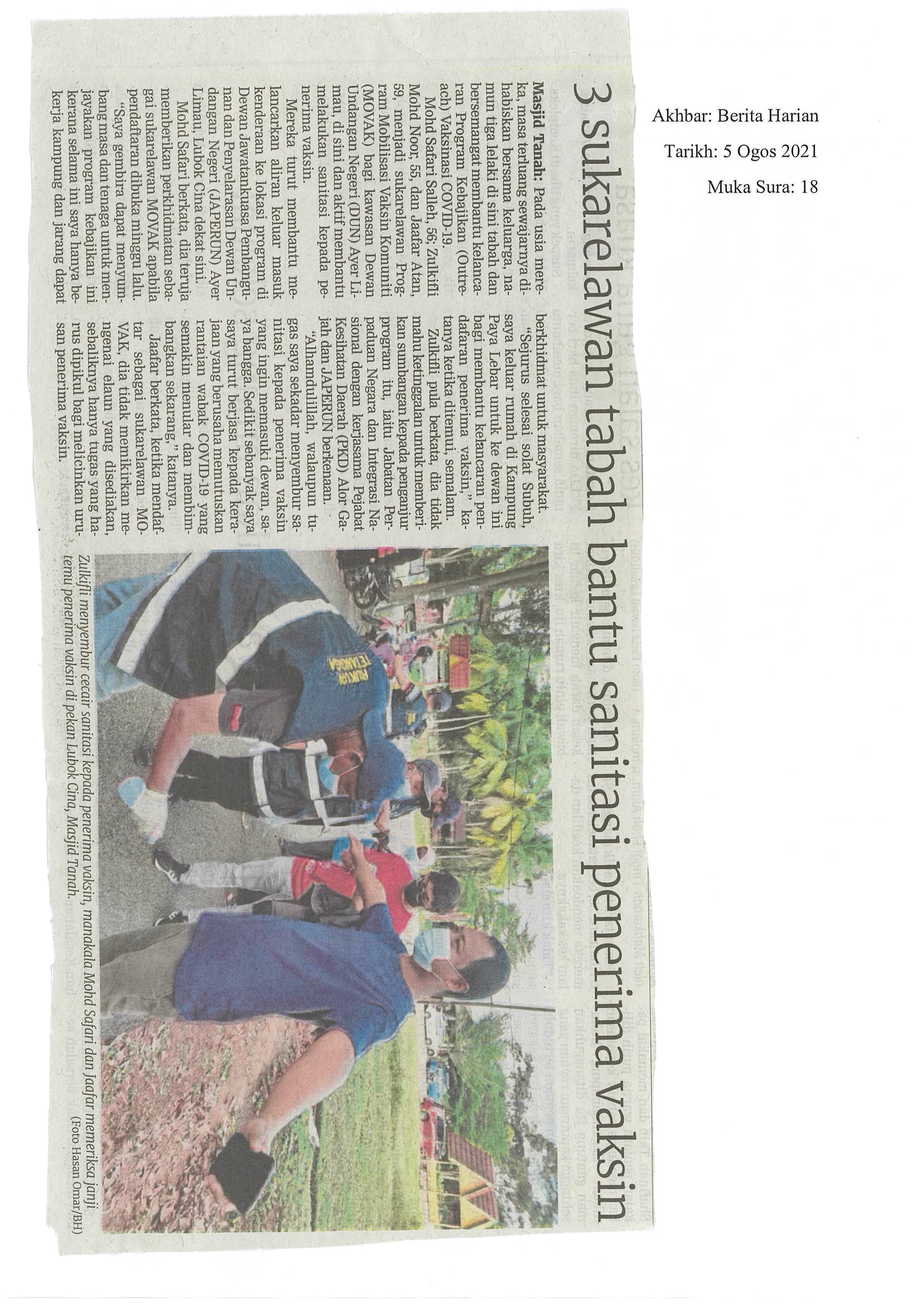 [5-08-2021] - 3 Sukarelawan tabah bantu sanitasi penerima vaksin