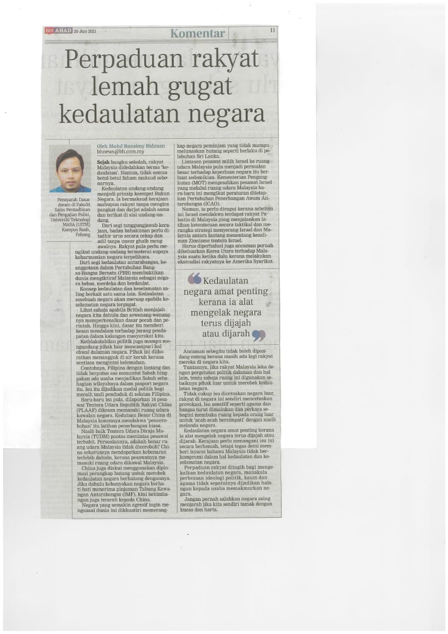 [20-06-2021] - Perpaduan rakyat lemah gugat kedaulatan negara
