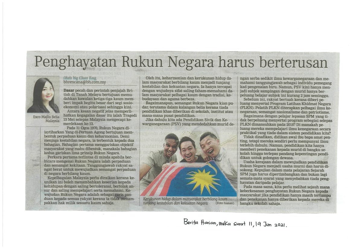 [19-06-2021] - Penghayatan Rukun Negara harus berterusan