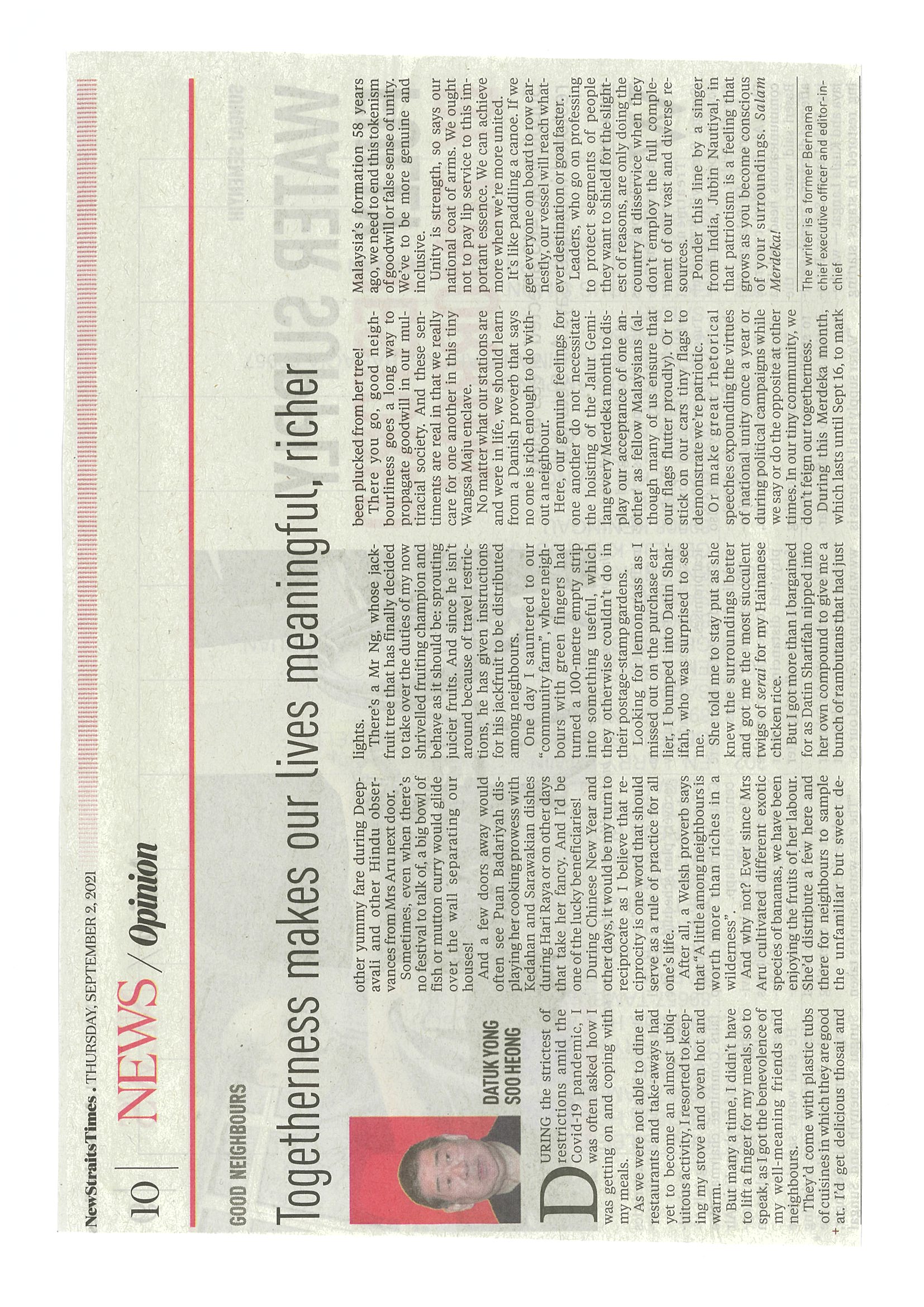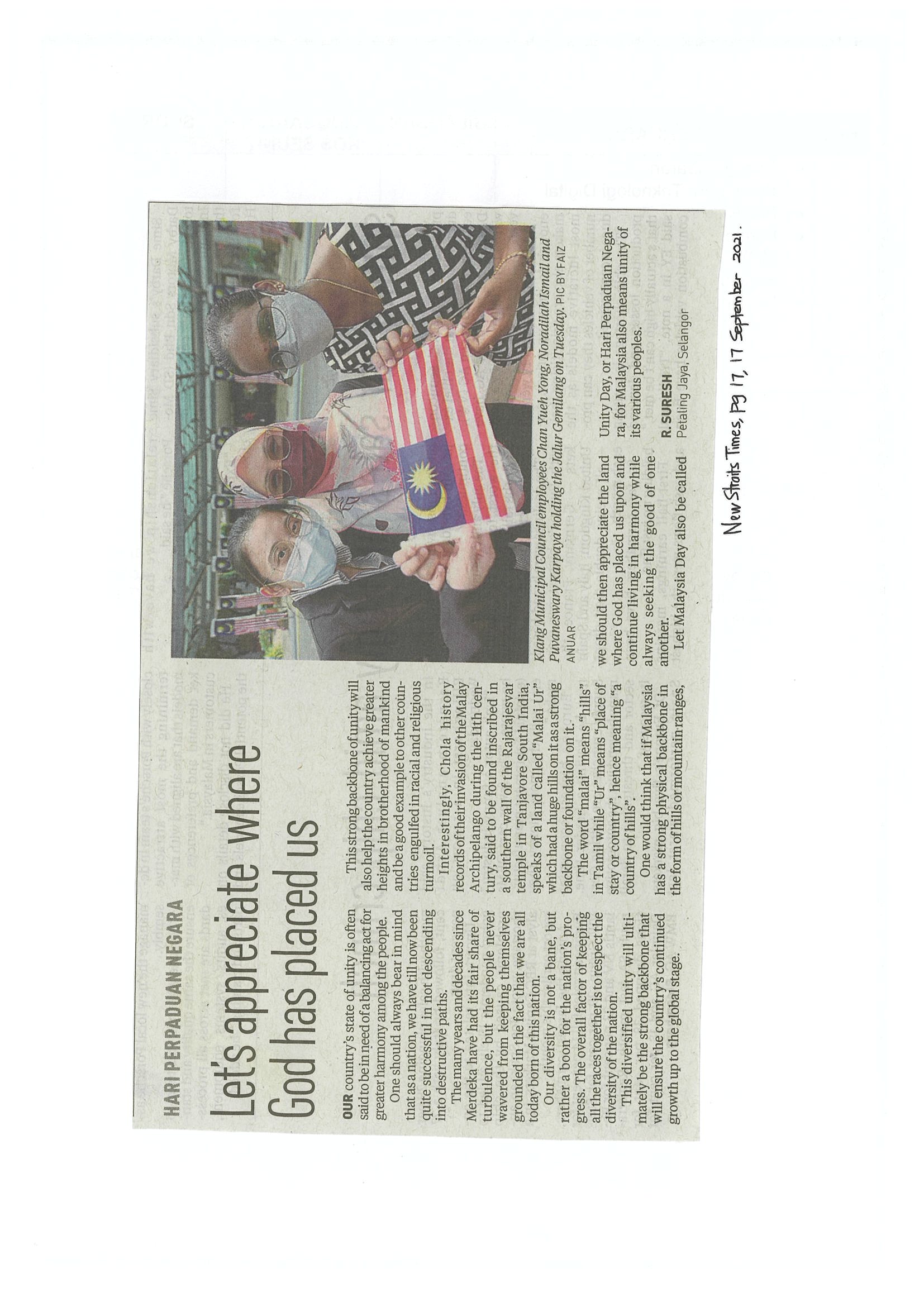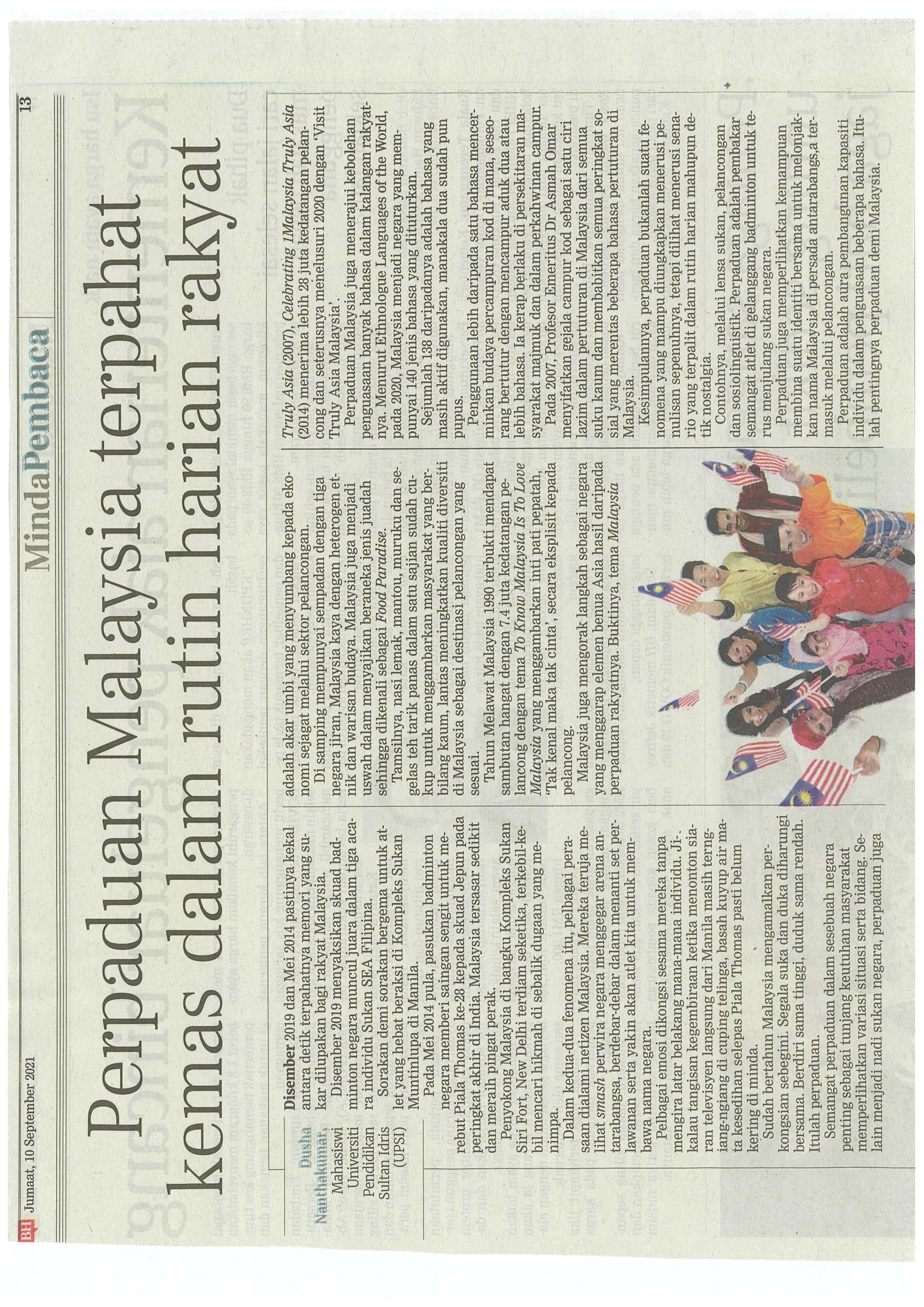[10-09-2021] - Perpaduan Malaysia terpahat kemas dalam rutin harian rakyat