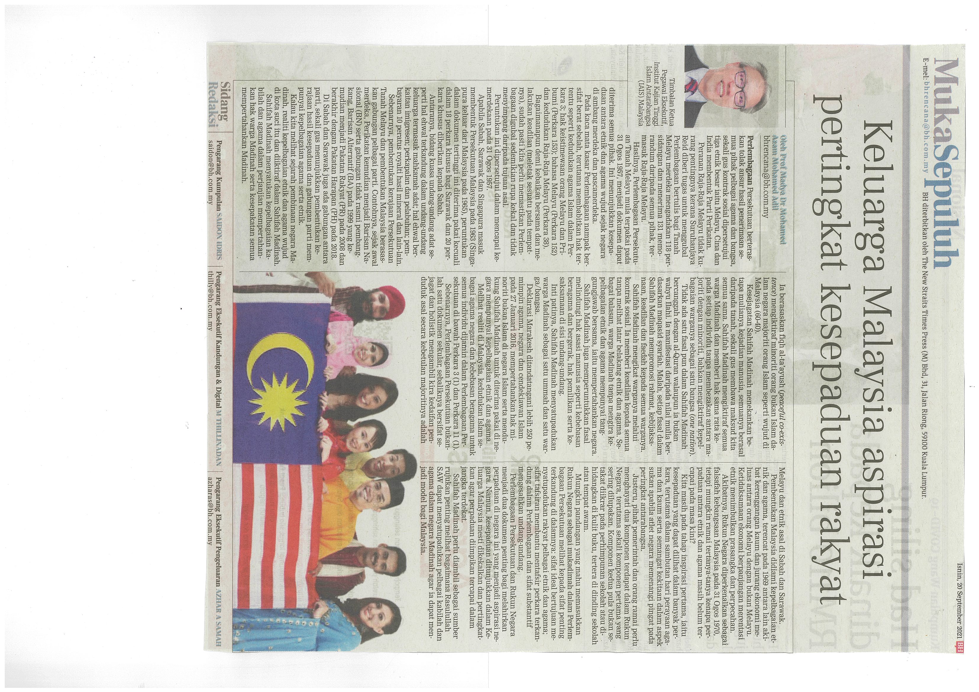 [20-09-2021] - Keluarga Malaysia aspirasi pertingkat kesepaduan rakyat