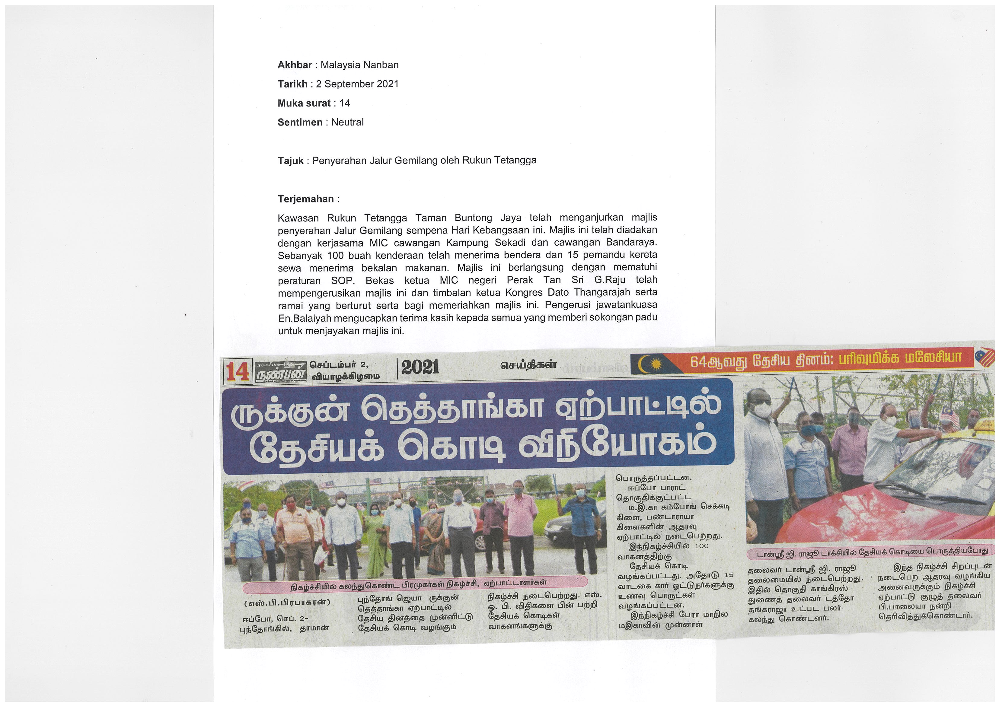[02-09-2021] - Penyerahan Jalur Gemilang oleh Rukun Tetangga