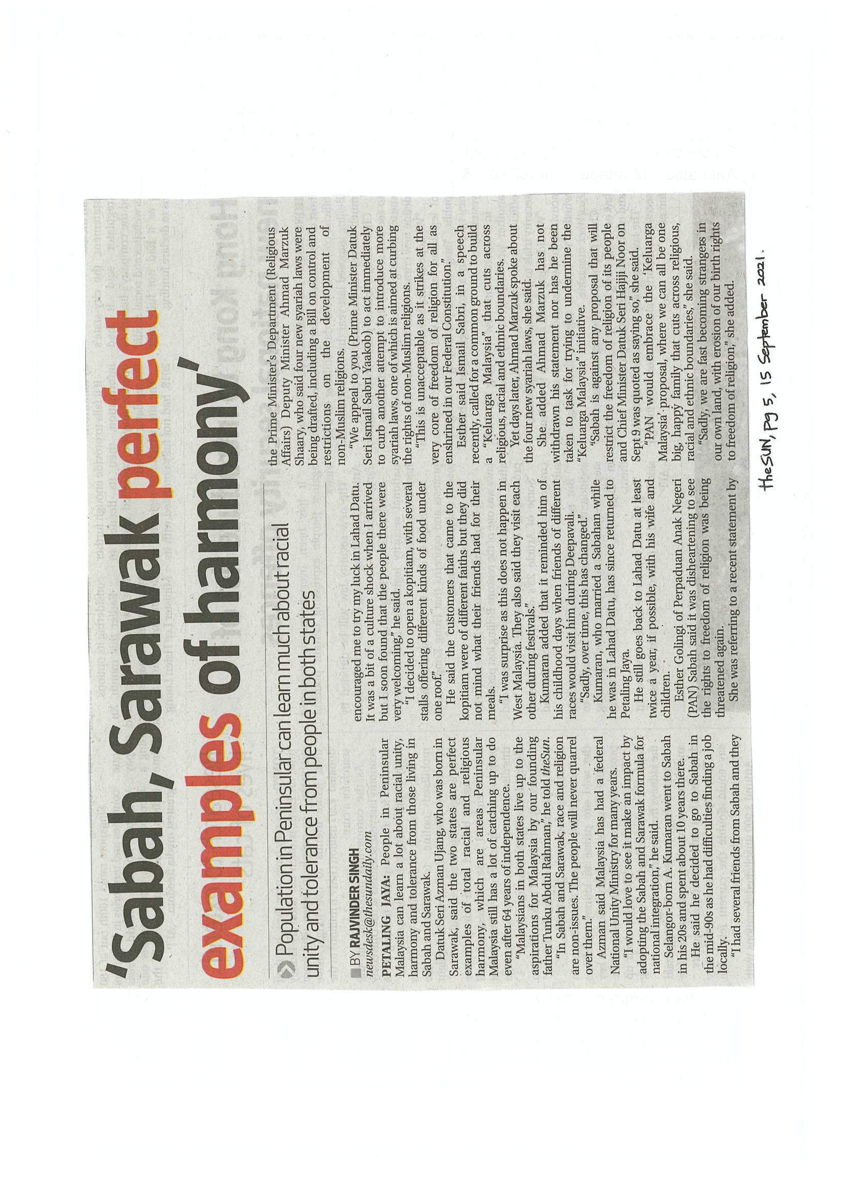 [15-09-2021] - ‘Sabah, Sarawak perfect examples of harmony’