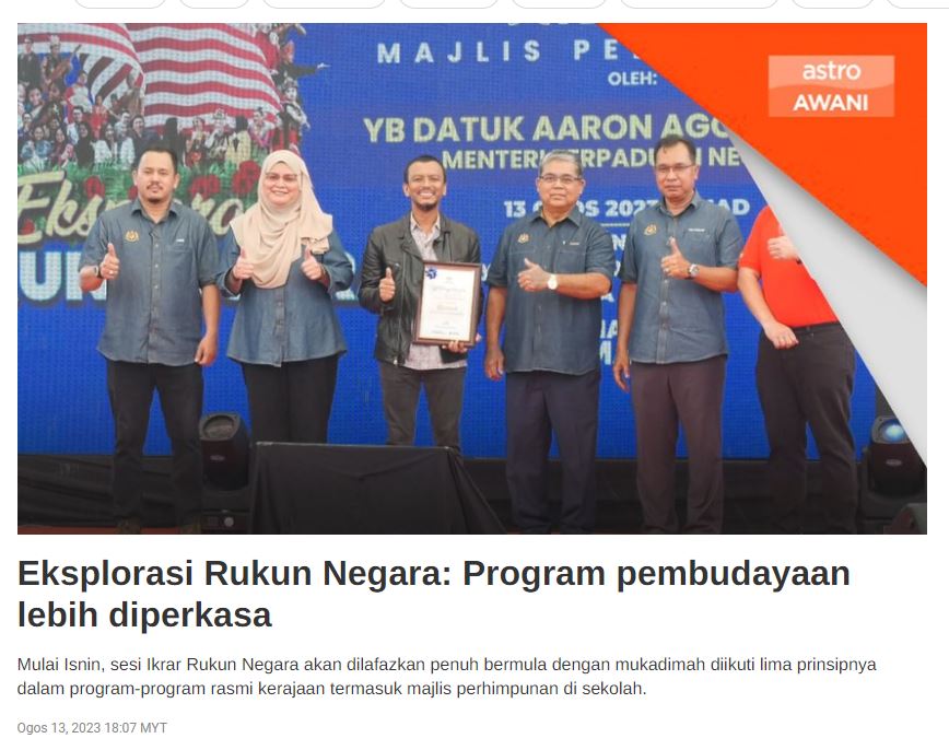 Astro Awani - Lafaz Rukun Negara akan dibaca penuh bermula dengan mukadimah - Aaron