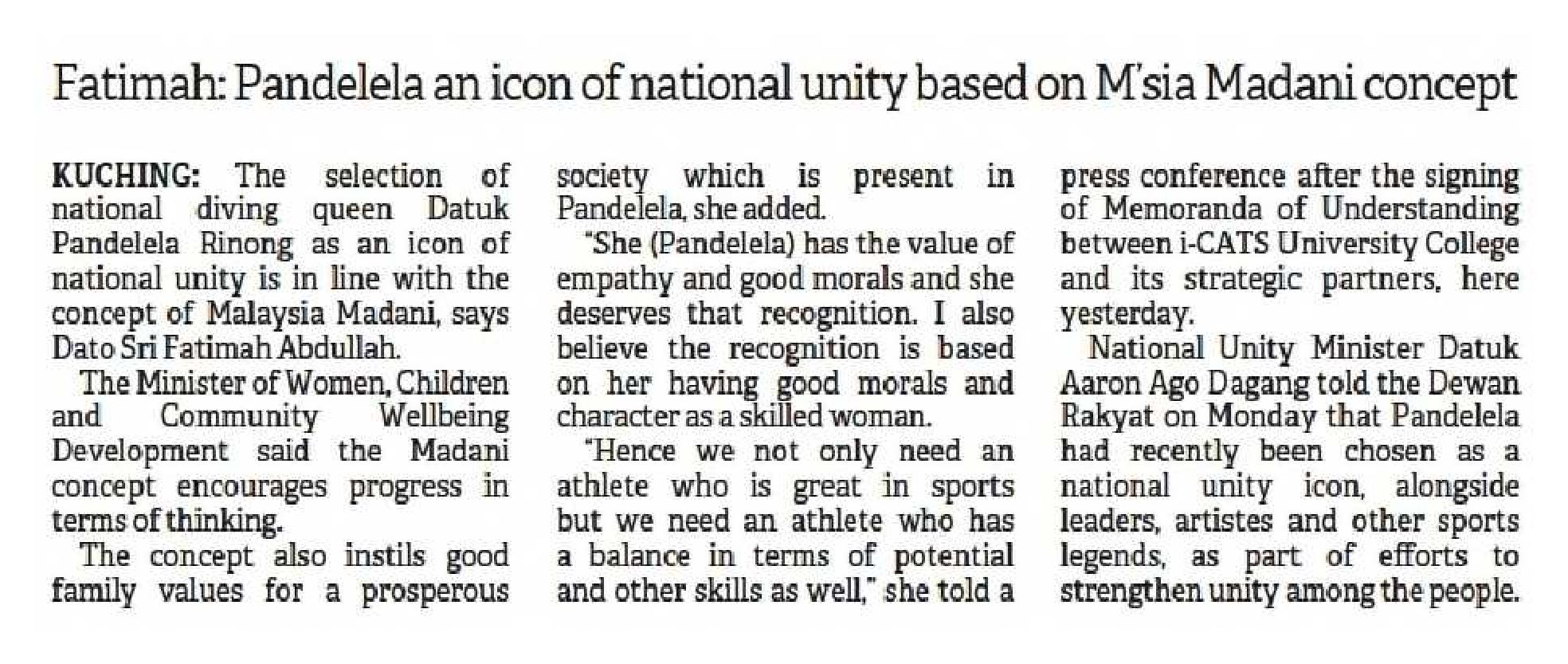 Fatimah : Pandelela an icon of national unity based on Malaysia MADANI concept