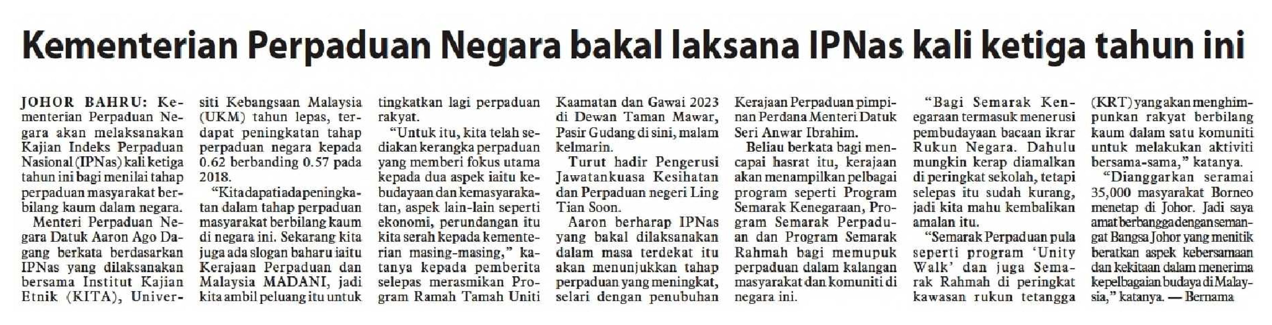 Kementerian Perpaduan Negara bakal laksana IPNas kali ketiga tahun ini
