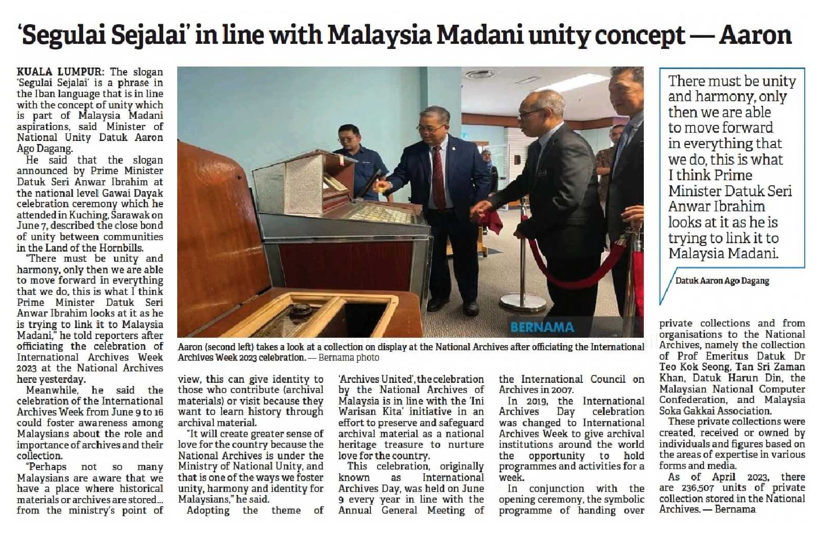 Aaron Ago : 'Segulai Sejalai' in line with Malaysia Madani unity concept