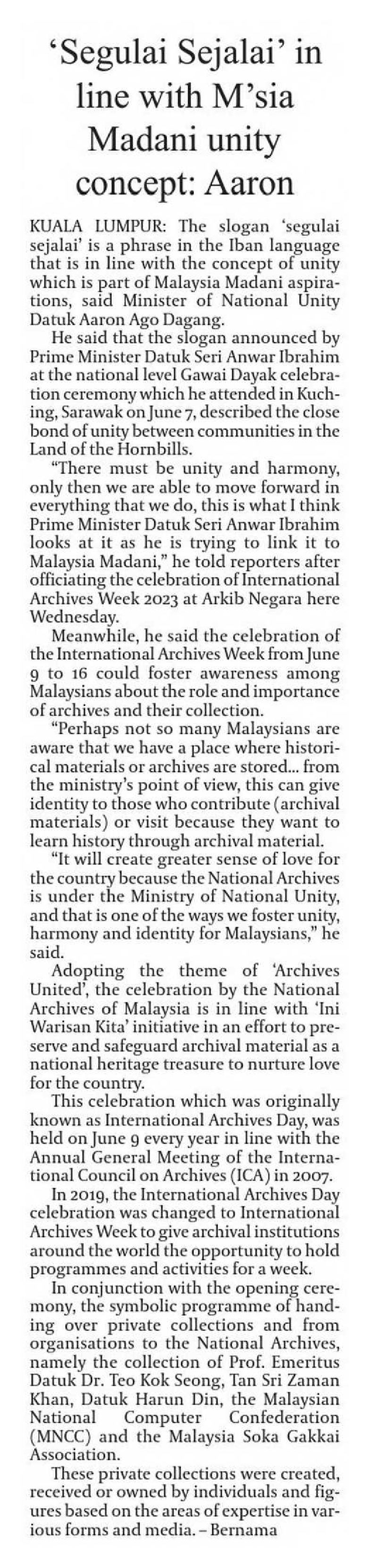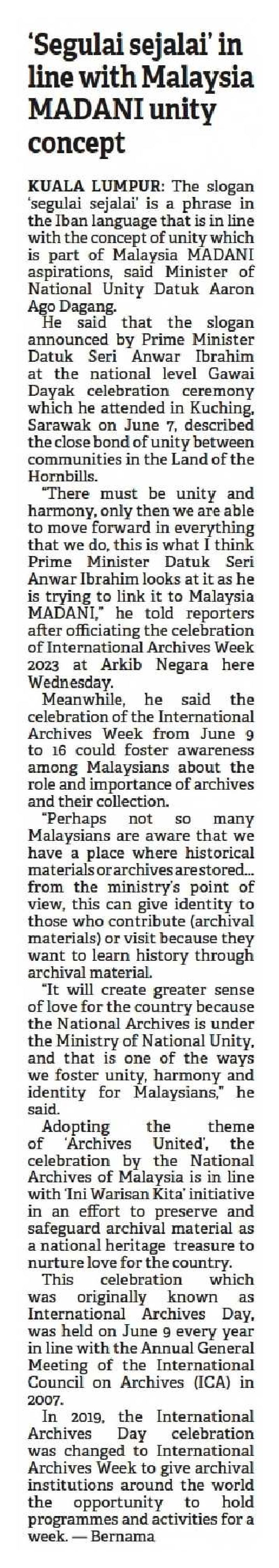 'Segulai Sejalai' In Line With Malaysia MADANI Unity Concept