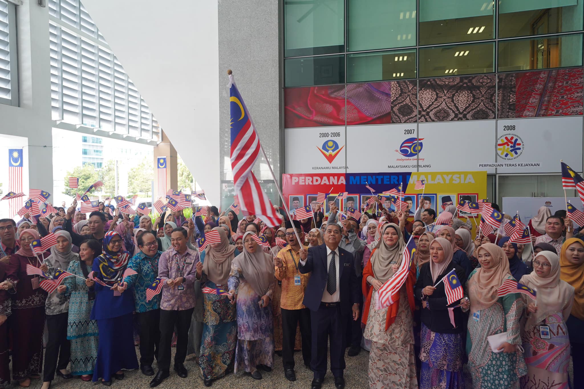3 Ogos 2023, Putrajaya -Warga Kementerian Perpaduan Negara dengan meriahnya telah mengibarkan Jalur Gemilang bersama-sama warga Suruhanjaya Perkhidmatan Pendidikan (SPP) dalam Majlis Pelancaran Bulan Kebangsaan dan Kibar Jalur Gemilang Kementerian Perpaduan Negara. Majlis dimulakan dengan bacaan ikrar rukun negara sebelum seluruh warga KPN, SPP dan SPA bersama-sama menyanyikan lagu-lagu kemerdekaan dengan penuh semangat dan meriah sekaligus mengibarkan Jalur Gemilang dengan penuh rasa hormat dan bangga. YB Datuk Aaron Ago Dagang, Menteri Perpaduan Negara dan YBhg. Dato' Indera Noridah binti Abdul Rahim, Ketua Setiausaha KPN telah menyempurnakan Pelancaran Bulan Kebangsaan dan Kibar Jalur Gemilang sekaligus menyerahkan Jalur Gemilang kepada Pengurusan Tertinggi Kementerian, Jabatan dan juga Agensi sebelum memasang Jalur Gemilang pada kenderaan Jabatan.