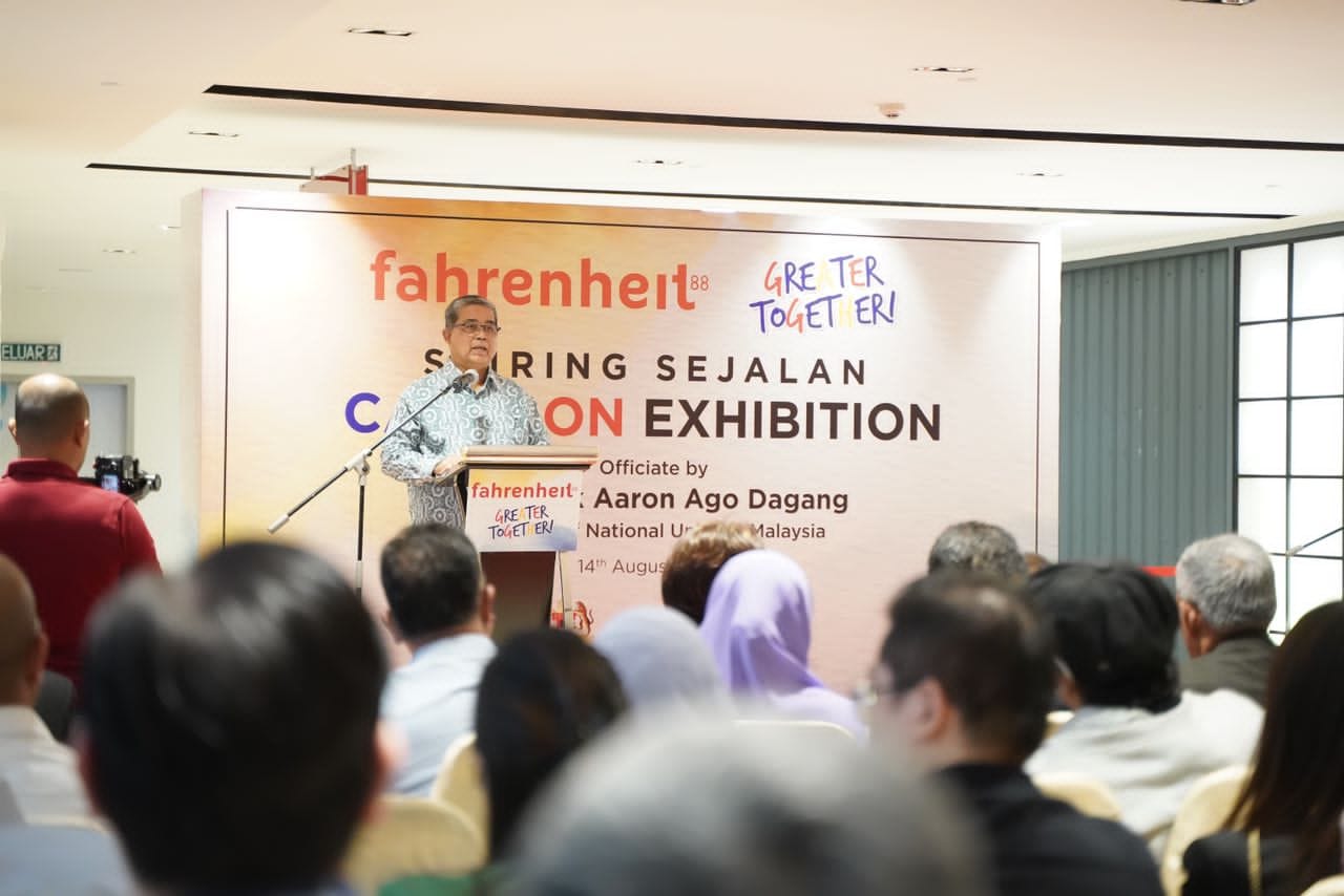14 Ogos 2023, Kuala Lumpur -Menteri Perpaduan Negara, YB Datuk Aaron Ago Dagang turut berkesempatan melancarkan Pameran Kartun ‘Seiring Sejalan’ buat julung-julung kalinya yang diadakan sempena Sambutan Hari Merdeka dan Hari Malaysia 2023 (HKHM 2023) di Fahrenheit88 Mall, Bukit Bintang tengahari tadi. Program yang merupakan cetusan idea Arkib Negara Malaysia dengan kerjasama oleh Rumah Kartun dan Komik Malaysia yang bertemakan ‘We Are Greater Together’ selaras dengan tema sambutan HKHM 2023 iaitu ‘Malaysia MADANI: Tekad Perpaduan Penuhi Harapan’.