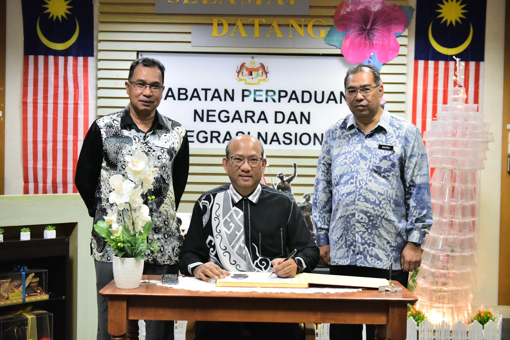 05 Oktober 2023, Putrajaya-YBhg. Datuk Azman bin Mohd Yusof, Ketua Setiausaha Kementerian Perpaduan Negara meluangkan waktu melawat ke Pejabat JPNIN bagi sesi perkenalan dan beramah mesra bersama warga kerja JPNIN. Dalam majlis yang ringkas ini, YBhg. Datuk KSU bersama dengan YBhg. Dato' Haji Che Roslan, Ketua Pengarah JPNIN turut membincangkan beberapa perkara dalam memantapkan gerak kerja dan memperhebatkan program-program anjuran JPNIN supaya dapat menyampaikan mesej-mesej perpaduan kepada rakyat Malaysia.