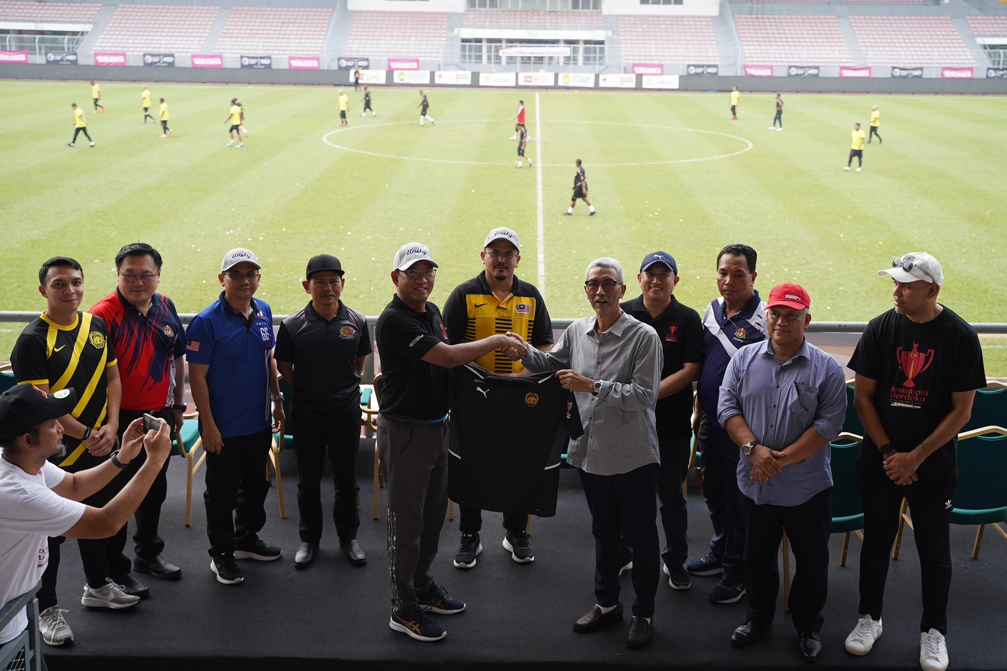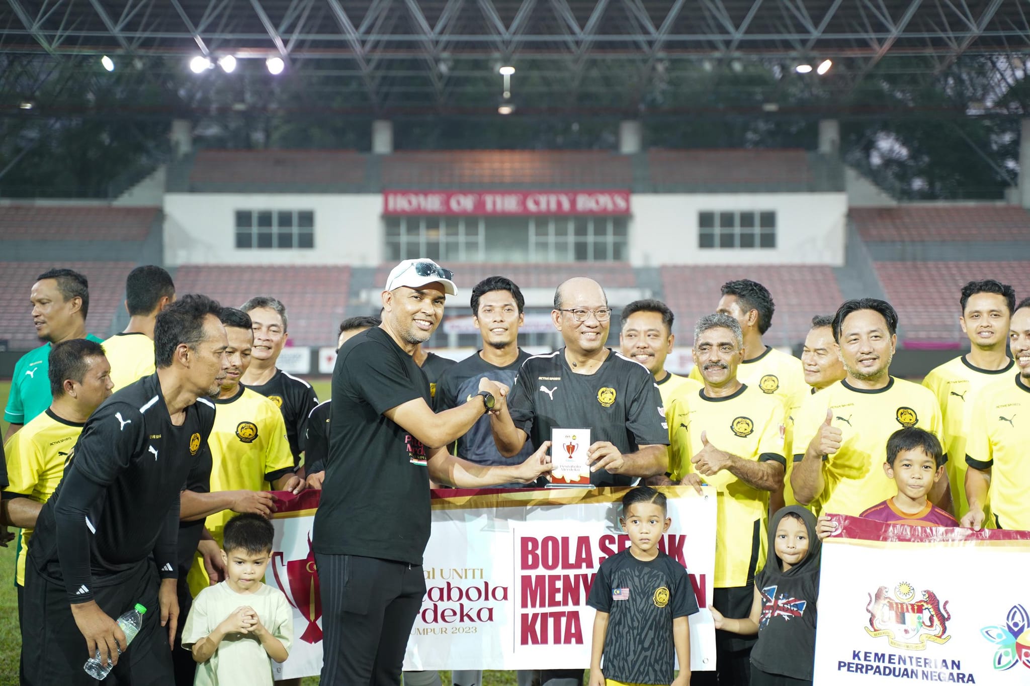 07 Oktober 2023, Kuala Lumpur-Perlawanan Amal UNITI Pestabola Merdeka yang berlangsung di Stadium Kuala Lumpur, Cheras. Kejohanan tersebut menyaksikan perlawanan antara Pasukan Lagenda Malaysia bersaing dengan Pasukan Selebriti/SAM.Sukan adalah elemen yang mampu menyatupadukan masyarakat tanpa mengira perbezaan. Tidak boleh dinafikan bahawa sukan adalah platform berkesan dalam membentuk perpaduan dalam kalangan rakyat Malaysia yang berbilang kaum.Penganjuran Pestabola Merdeka kali ini adalah usaha Kementerian dalam merealisasikan agenda perpaduan dalam bidang sukan. Melalui sukan, dapat kita saksikan ia mampu menjadi tapak integrasi pelbagai kaum.Turut hadir, YBhg. Datuk Azman bin Mohd Yusof, Ketua Setiausaha Kementerian Perpaduan Negara dan YBrs. Encik Mohd Sobri bin Mat Daud, Timbalan Ketua Setiausaha KPN dalam memberikan sokongan sepanjang perlawanan berlangsung.