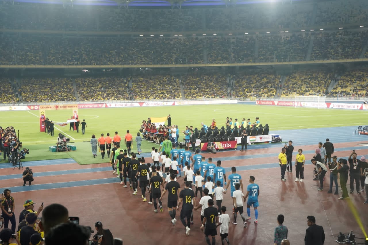 13 Oktober 2023,Kuala Lumpur-Tahniah pasukan Harimau Malaya yang telah berjaya menewaskan India dengan keputusan 4-2 pada perlawanan Pestabola Merdeka malam ini.Perlawanan ini disaksikan oleh lebih 46,000 orang di Stadium Bukit Jalil! YBhg. Datuk Azman bin Mohd Yusof, Ketua Setiausaha Kementerian Perpaduan Negara tidak melepaskan peluang untuk bersama-sama memberikan sokongan.