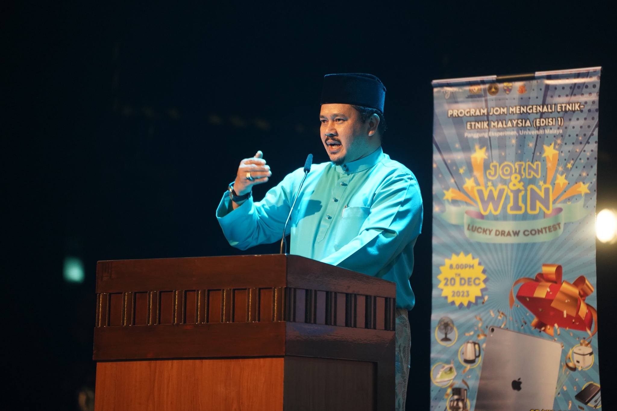 20 Disember 2023, Kuala Lumpur - YBrs. Encik Mohamad Sobri Bin Mat Daud, Timbalan Ketua Setiausaha, Kementerian Perpaduan Negara turut hadir bersama di Program "Jom Mengenali Etnik-etnik Malaysia" yang telah diadakan di Panggung Eksperimen Universiti Malaya anjuran Kementerian Perpaduan Negara dengan Kerjasama Persatuan Manora Kedah, Fakulti Seni Kreatif, Universiti Malaya dan Persatuan Siam Malaysia.